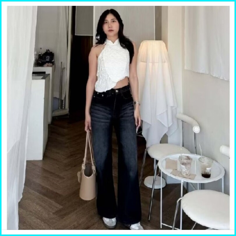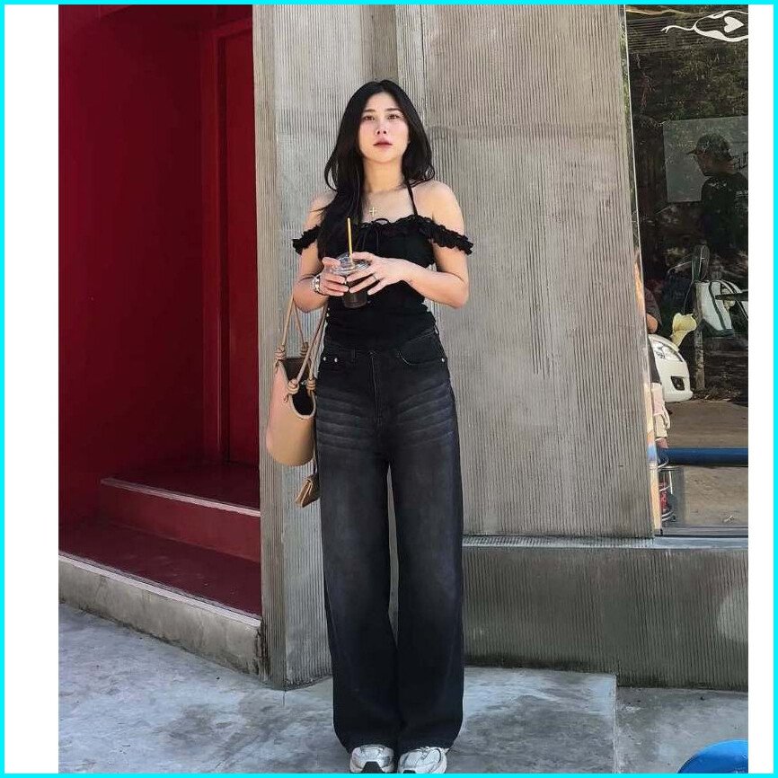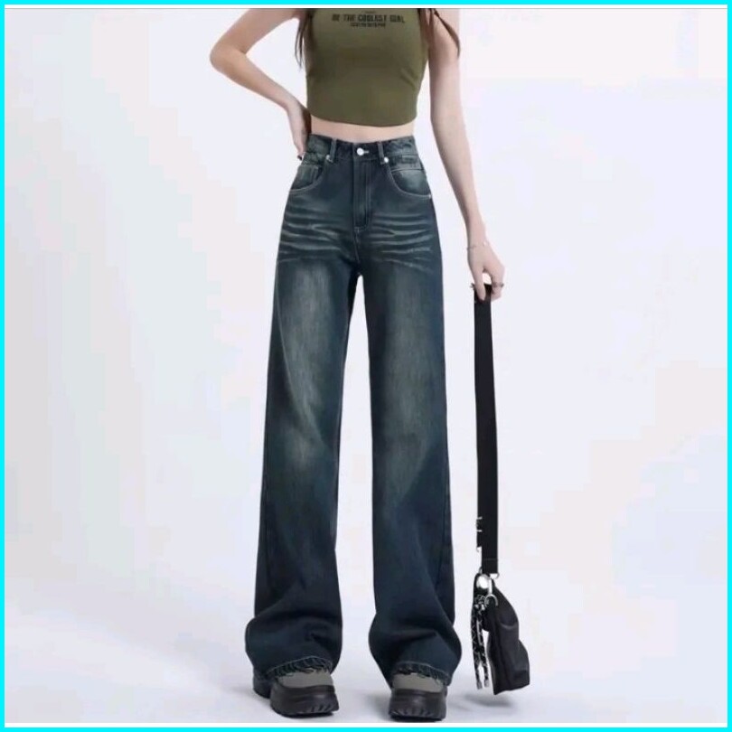 Celana Baggy Loose Jeans Wanita Highwaist Retro Korean Look Non-stretch Premium