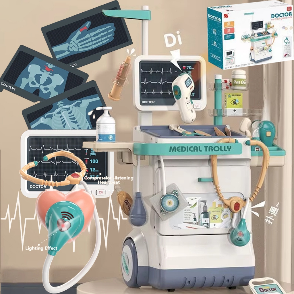 Mainan Dokter Dokteran Anak Lengkap Edukasi Medical Playset Dokter Set Premium Troli Dorong Toys
