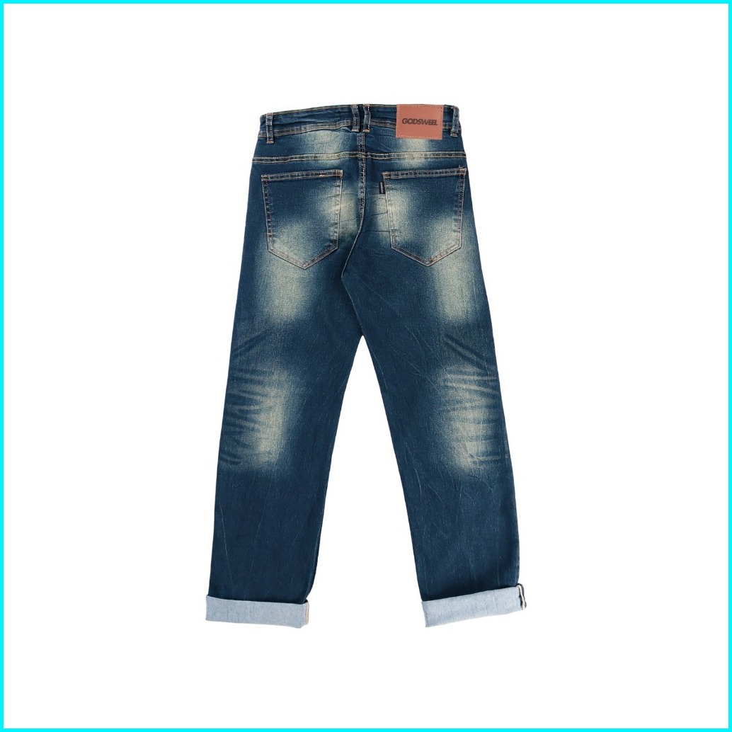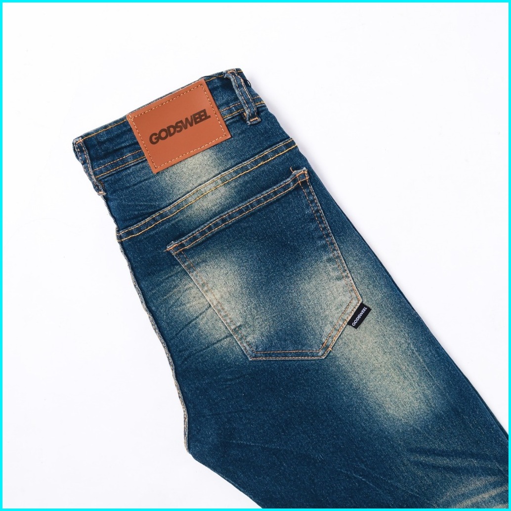 Godsweel Celana Jeans Reguler Pria Standar Panjang Stretch Meral Aksen Selvedge Biotink