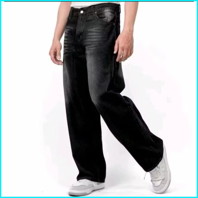 Company - Celana Jeans Wide Leg Wisker Lebar Gombrong Skena Pria Loose Fit Jumbo