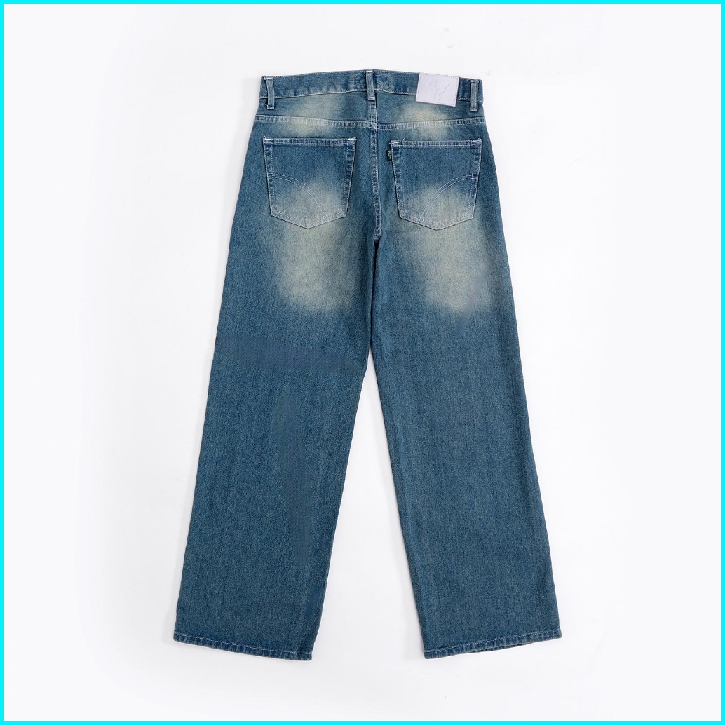 Pluviophile - Celana Jeans Wide Leg Gombrong Wisker Blue Think