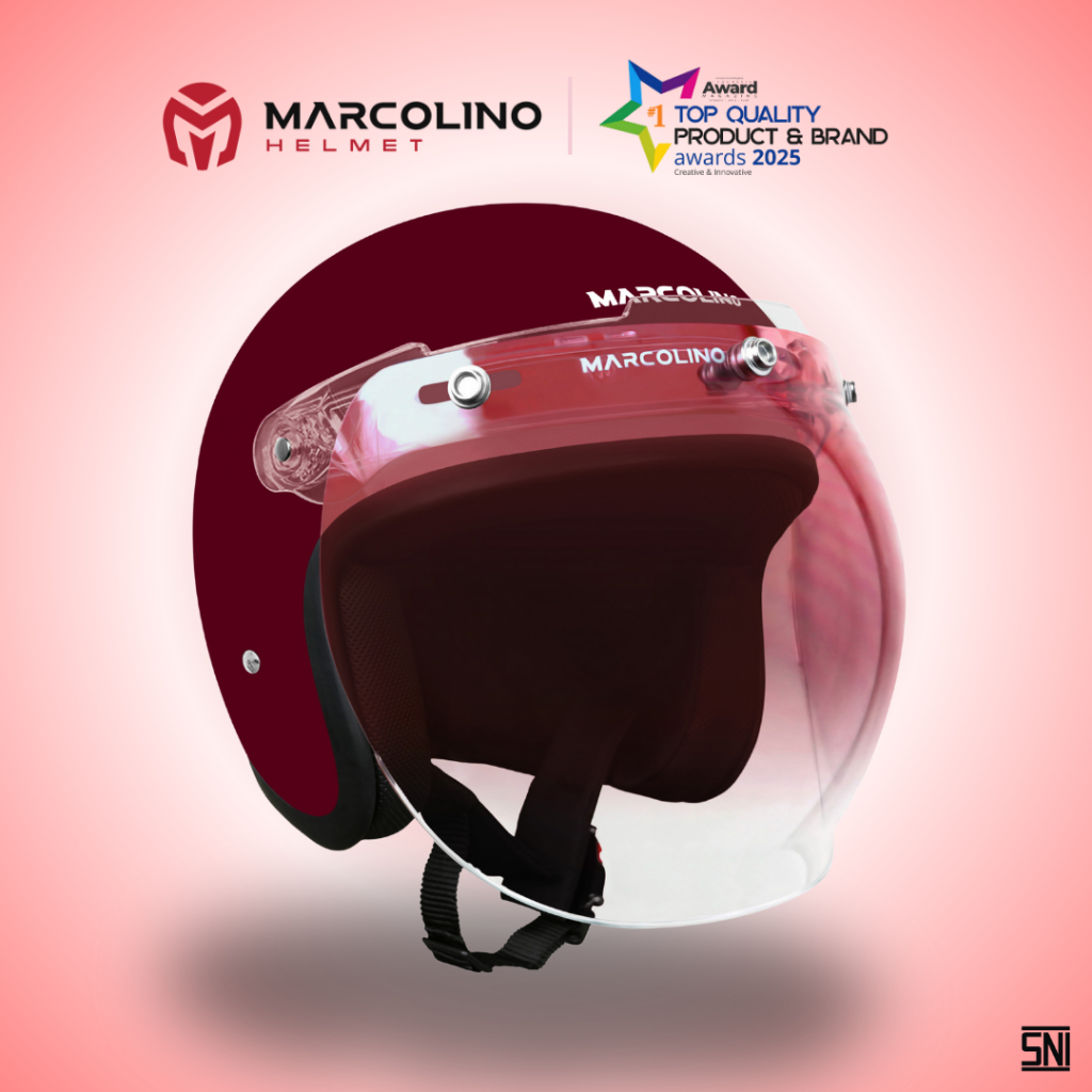 Helm Bogo Retro [ Maroon Glossy With Visor ] Marcolino Helmet Glossy Edition SNI - Helm Wanita cowo pria & cewe pria wanita perempuan keren aestethic