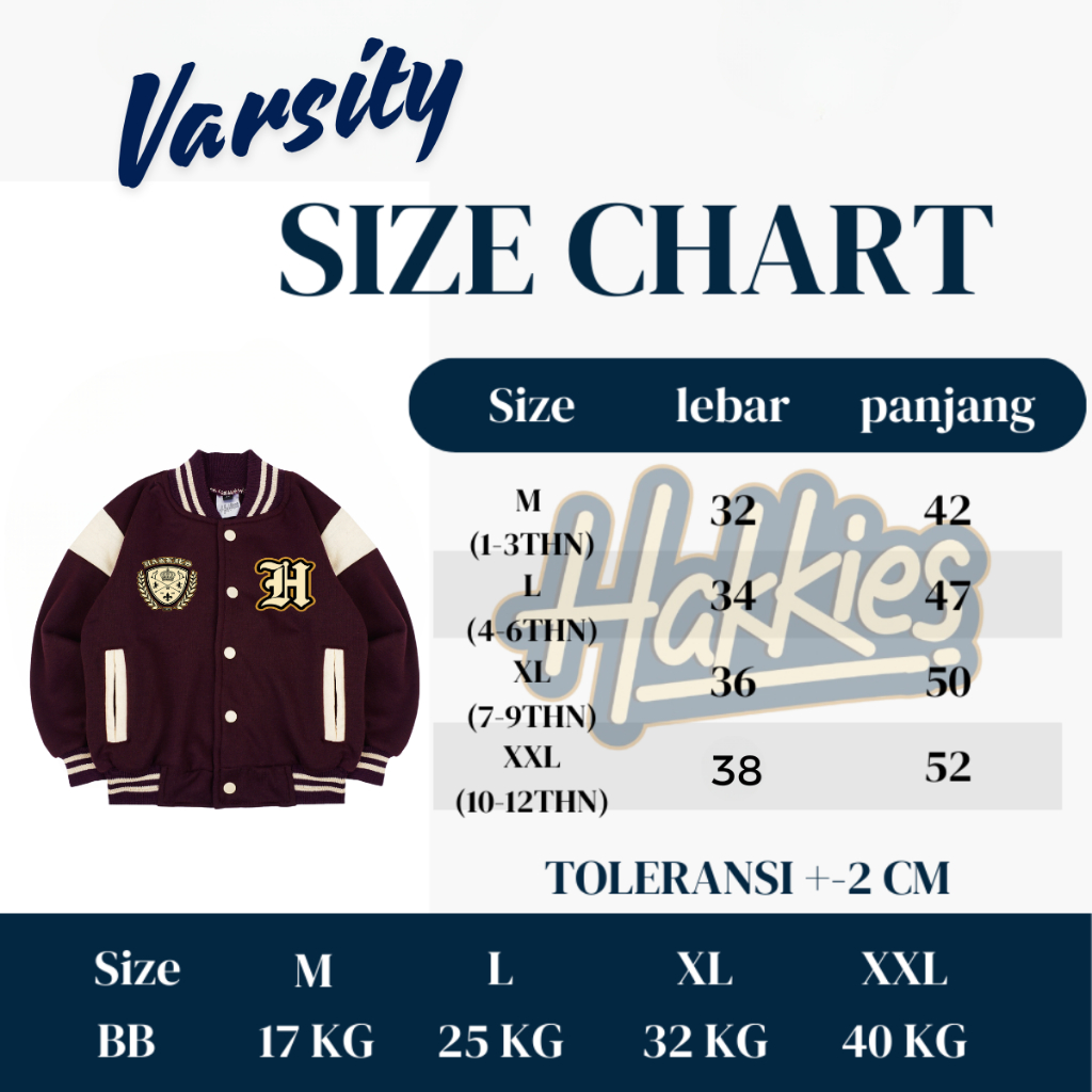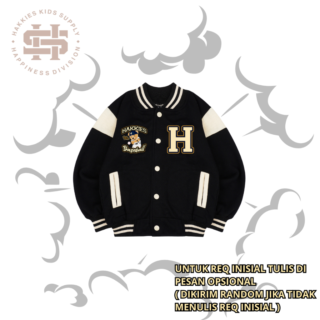 Hakkies Varsity Jacket Baseball Beruang Anak Inisial A-Z Laki Laki Perempuan Umur 1 - 12 Tahun Tahun
