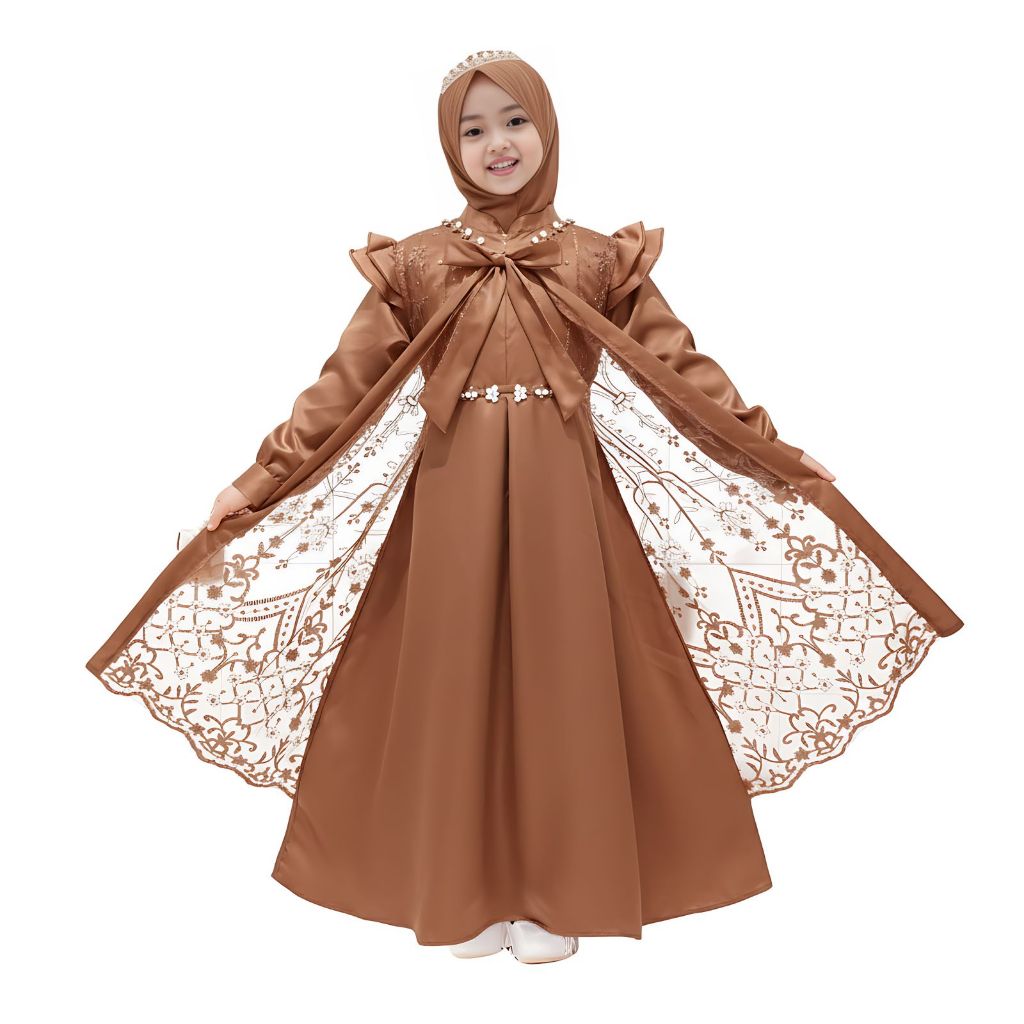 Gamis anak mahogany perempuan Syafira 2-13thn / baju pesta anak mu / baju pesta anak mahogany perempuan mu / gamis pesta