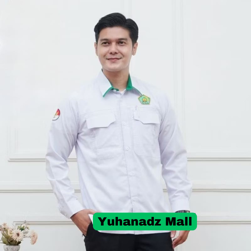TUNIK PDH KEMENAG PUTIH WANITA LENGAN PANJANG TERBARU 2025 / TERBARU SOP PEMERINTAH / BAJU WANITA ASN PUTIH / KEMEJA WANITA PUTIH LENGAN PANJANG LIST HIJAU FREE CUSTUM NAMA