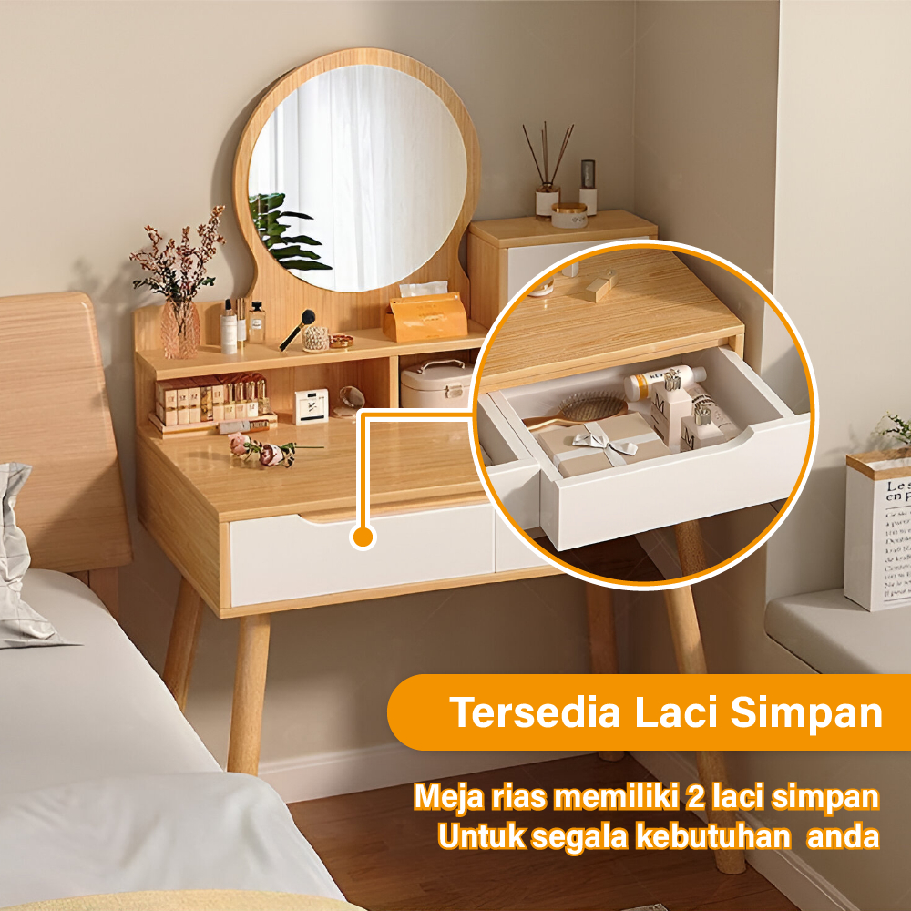 Aihome Living MejaRias MejaCermin MejaKamar Minimalis Kayu Belajar Elegan Aesthetic Modern