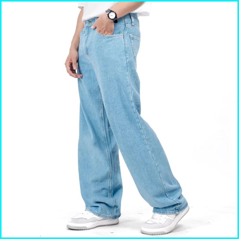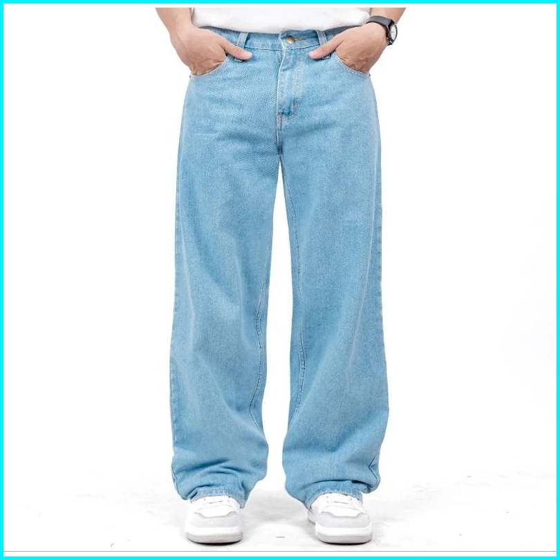 Celana Jeans Pria Baggy Pants Korean Style Oversize Straight Loose Blue Reguler Fit Wide Leg
