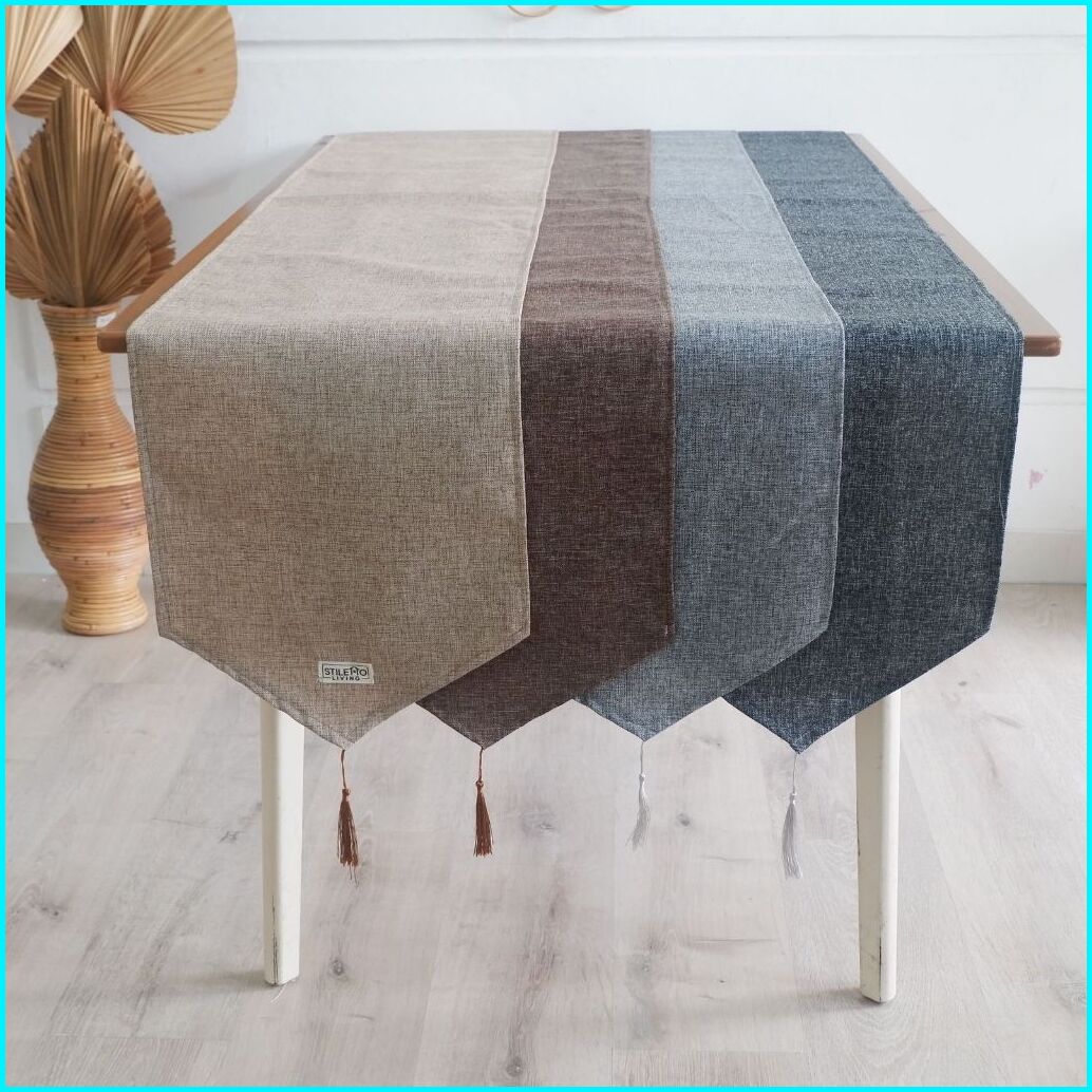 Taplak Meja Katun Polos Kimmy Polyester Tassel Taplak Meja Panjang Table Runner Estetik Minimalis