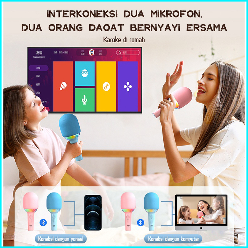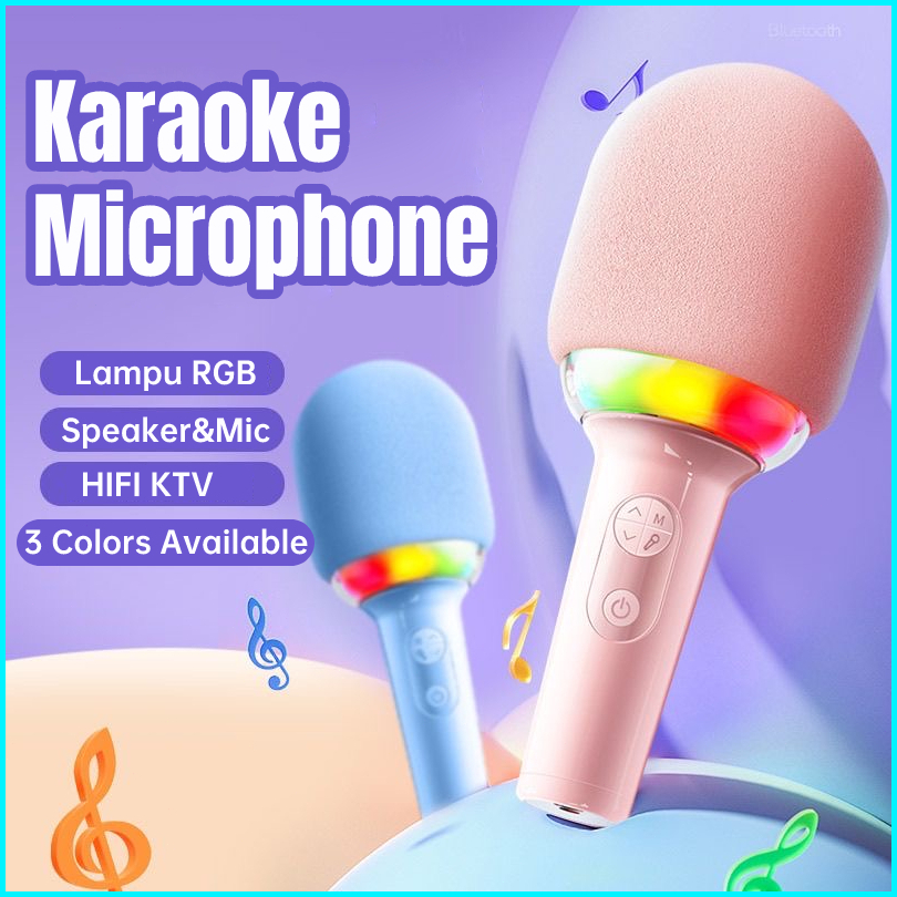 L8 Wireless Microphone Karaoke Bluetooth Mikropon Karaoke Speaker Karaoke Mic Portable Dan Lampu Rgb
