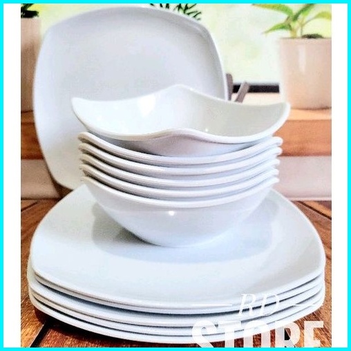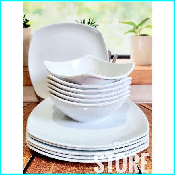 Promo 12.pcs Isi 6.piring Mangkok Melamine Polos
