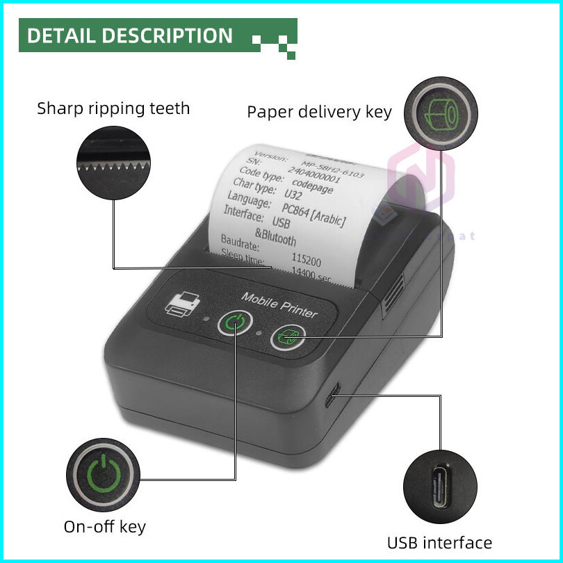 Printer Buletooth Mini Printer Kasir 58mm Printer Thermal Support Android Ios Windows Bluetooth Usb Free Gift 3 Rol Kert