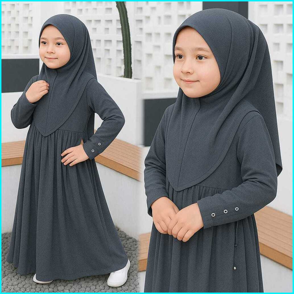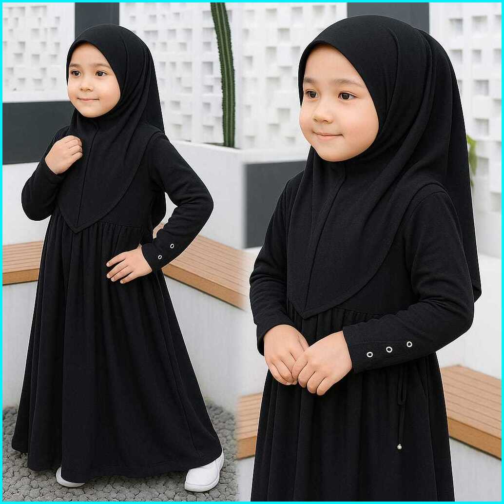 Gamis Abaya Anak Perempuan Set Hijab Model Terbaru Lebaran 2025 Dress Simple - Gamis Couple Ibu Anak
