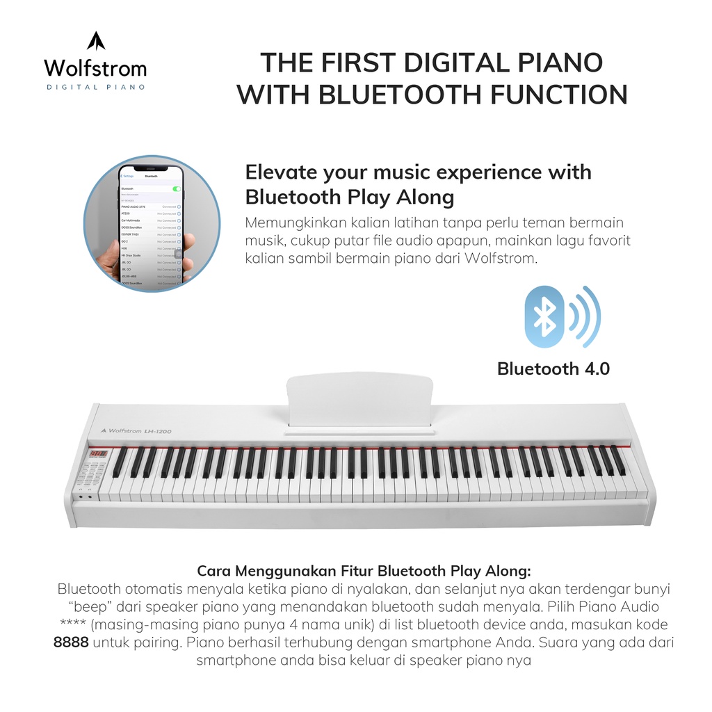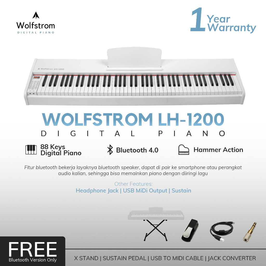 Wolfstrom LH-1200 Hammer Action Keys Digital Electric Piano Elektrik