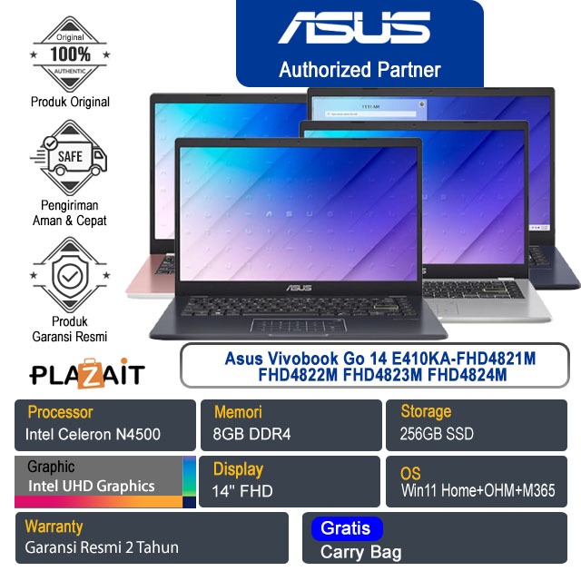 Asus vv000book Go 14 E410KA-FHD4821M FHD4822M FHD4823M FHD4824M /Intel Celeron N4500/8GB/256GB SSD/Intel UHD Graphics/14″ FHD/Win 11 Home+OHS+M365/2Y