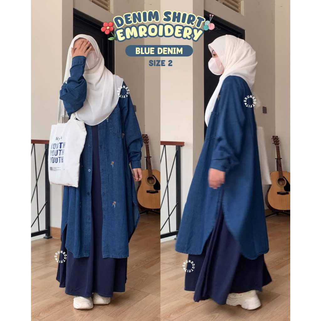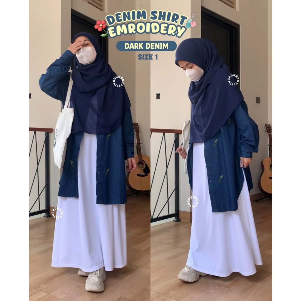 Denim Shirt Embroidery Arunaoutfit Halus Lembut