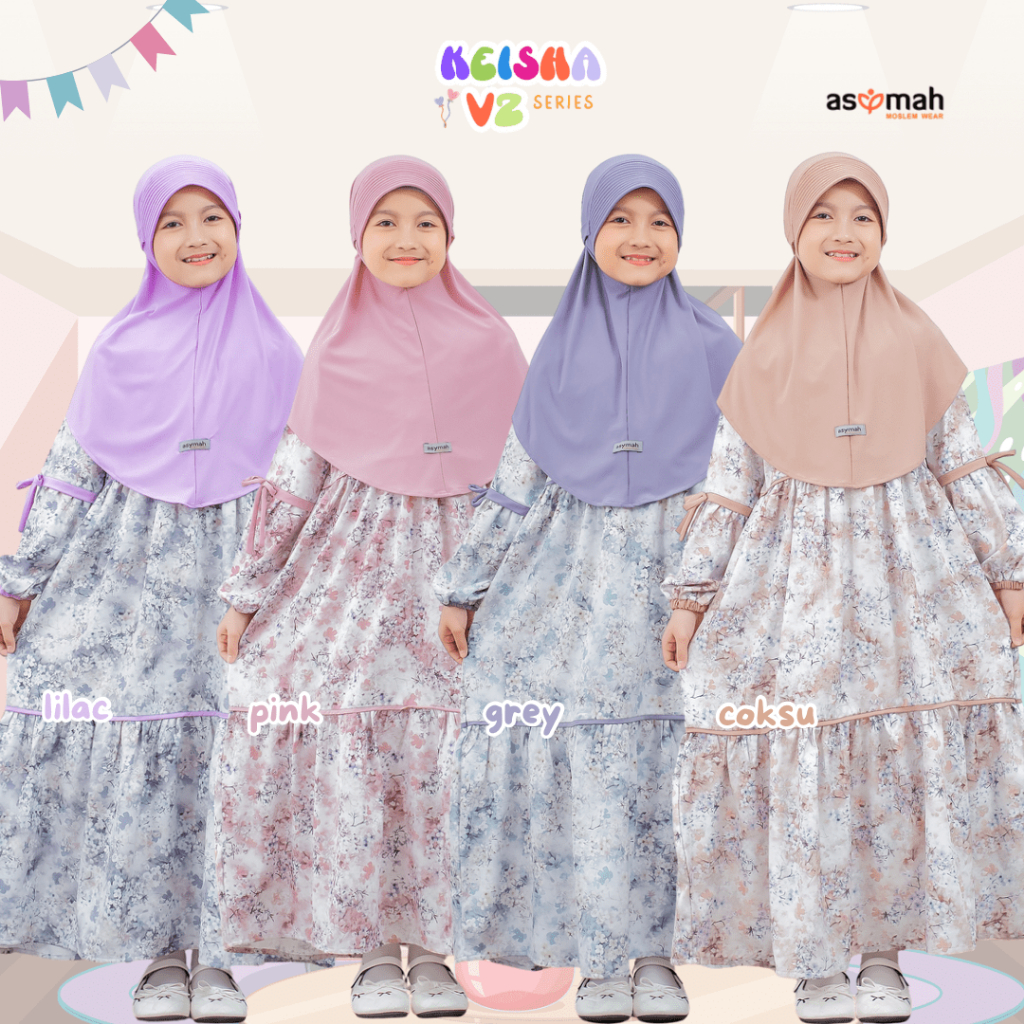 ASYMAH Gamis Anak Perempuan Set Jilbab Kerudung Syari Motif Floral Bahan Lionelrichi - Keisha V2