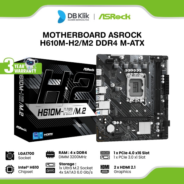 Asrock Motherboard H610M-H2/M2 Ddr4 Lga1700 M-Atx