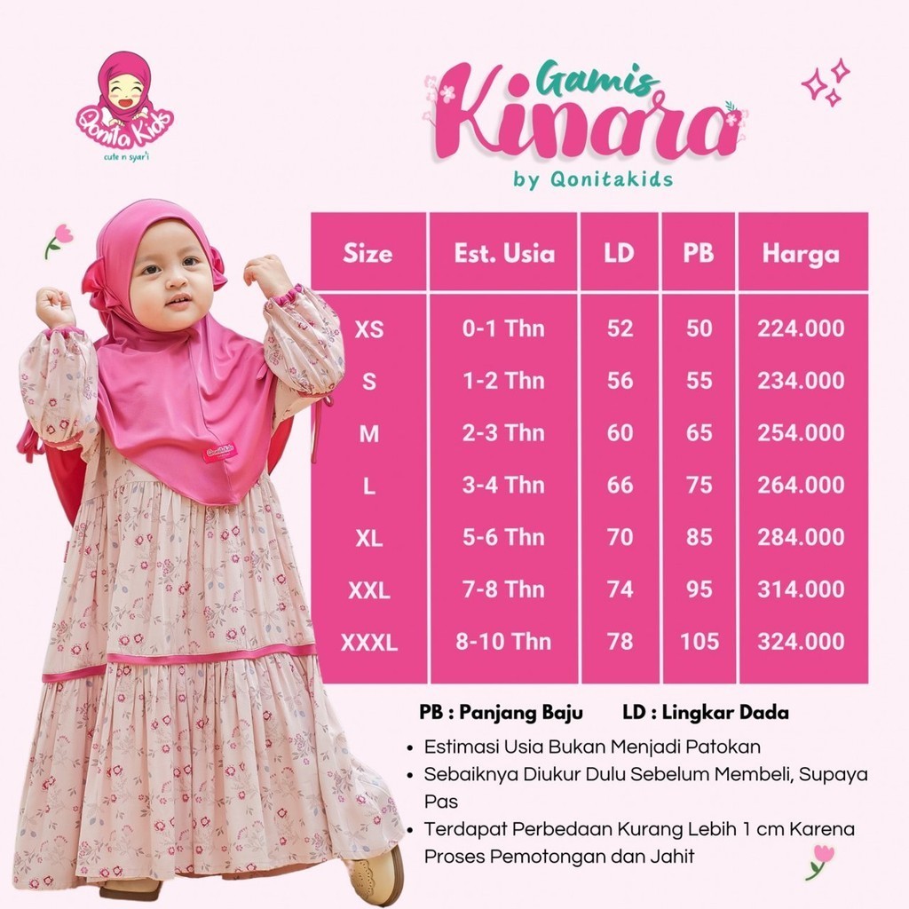 Qonita Kids - Gamis Kinara Set (0 - 10 thn + Satu Set Hijab) Gamis Rayon anak perempuan Baju Mu Panjang Nyaman Motif Sya
