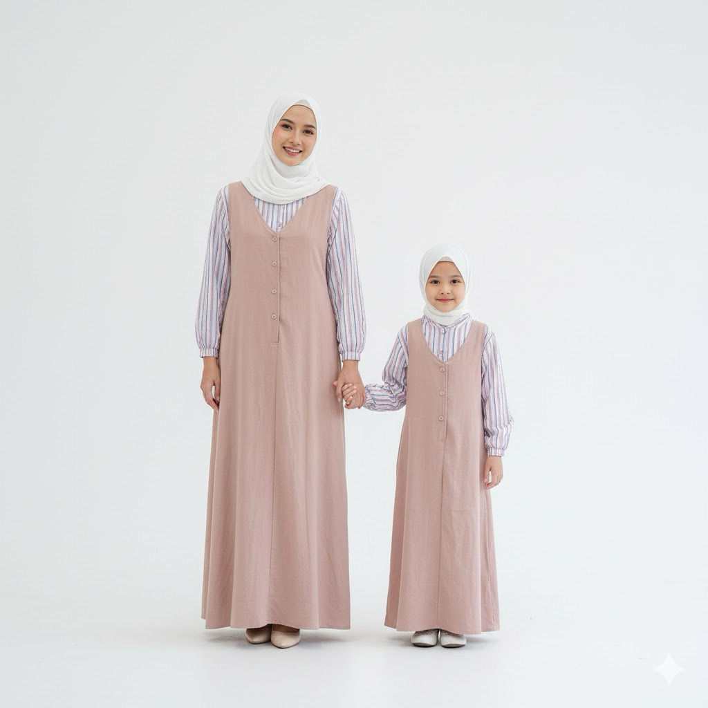 Setelan Overall Anak dan Ibu Baju Gamis Anak wanita Fashion Mu Lengan Panjang Syar'i Katun