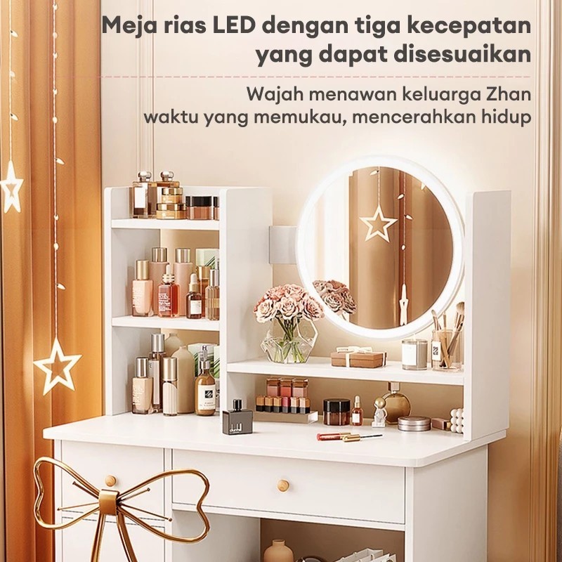 Damaindah Meja Rias Set Kursi Pita / Meja Rias Lampu LED/Meja Rias Aesthetic/Minimalis/Mini/Modern/Nordic/Murah
