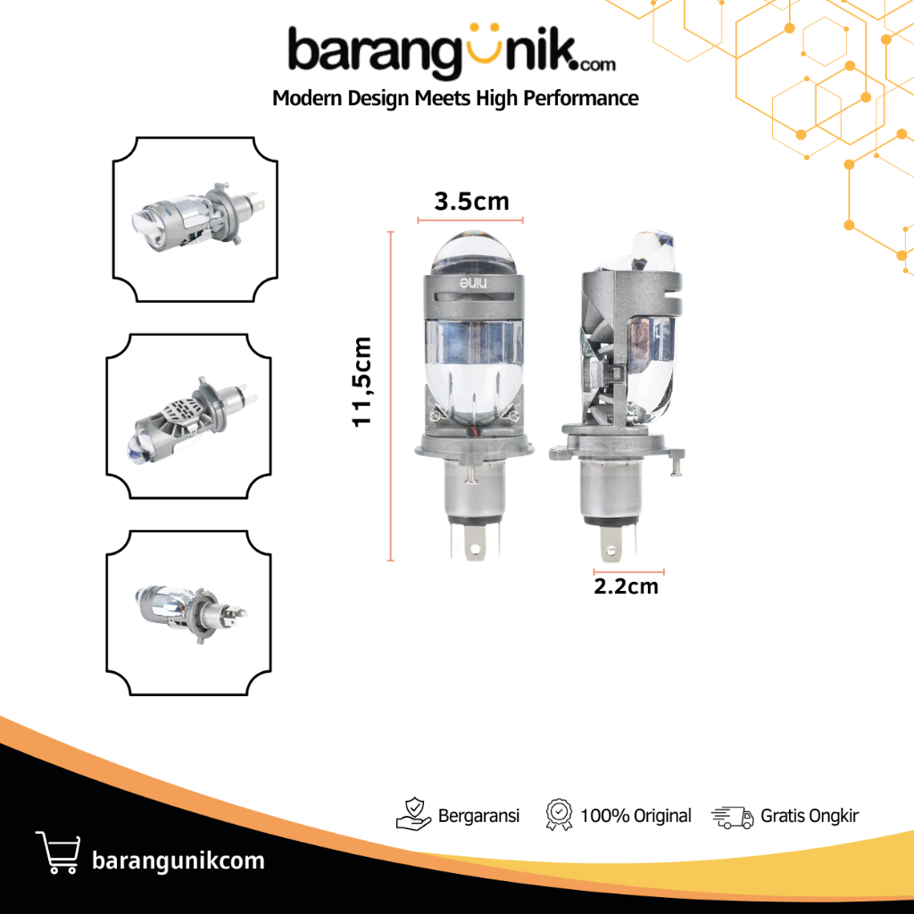 Lampu Utama Mini Biled H4 50 Watt Projie Projector Laser Cut Off Flat Motor Mobil Truk MP3 LUXIMOS