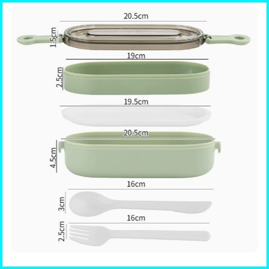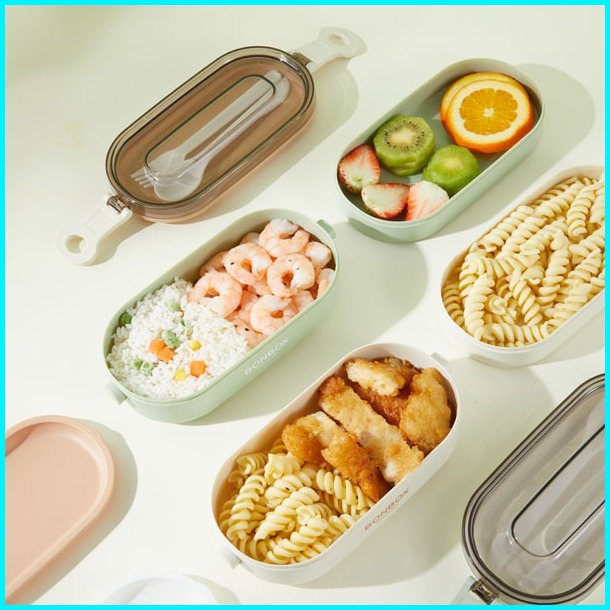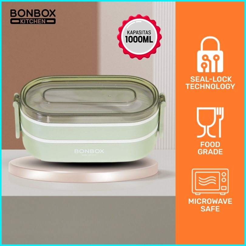 Ready Stock Lunch Box Pp Bonbox 1000ml - 2 Lapis Sekat Anti Bau Material Food Grade Bpa Free Aman Microwave Warna Hijau