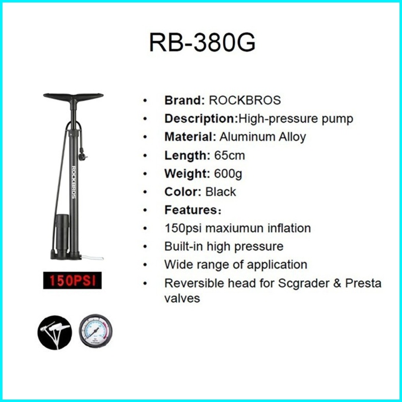 Rockbros Pompa Sepeda Bola Air Pump 380g 160 Psi Road Bike Mtb Sepeda Lipat Sepeda Motor