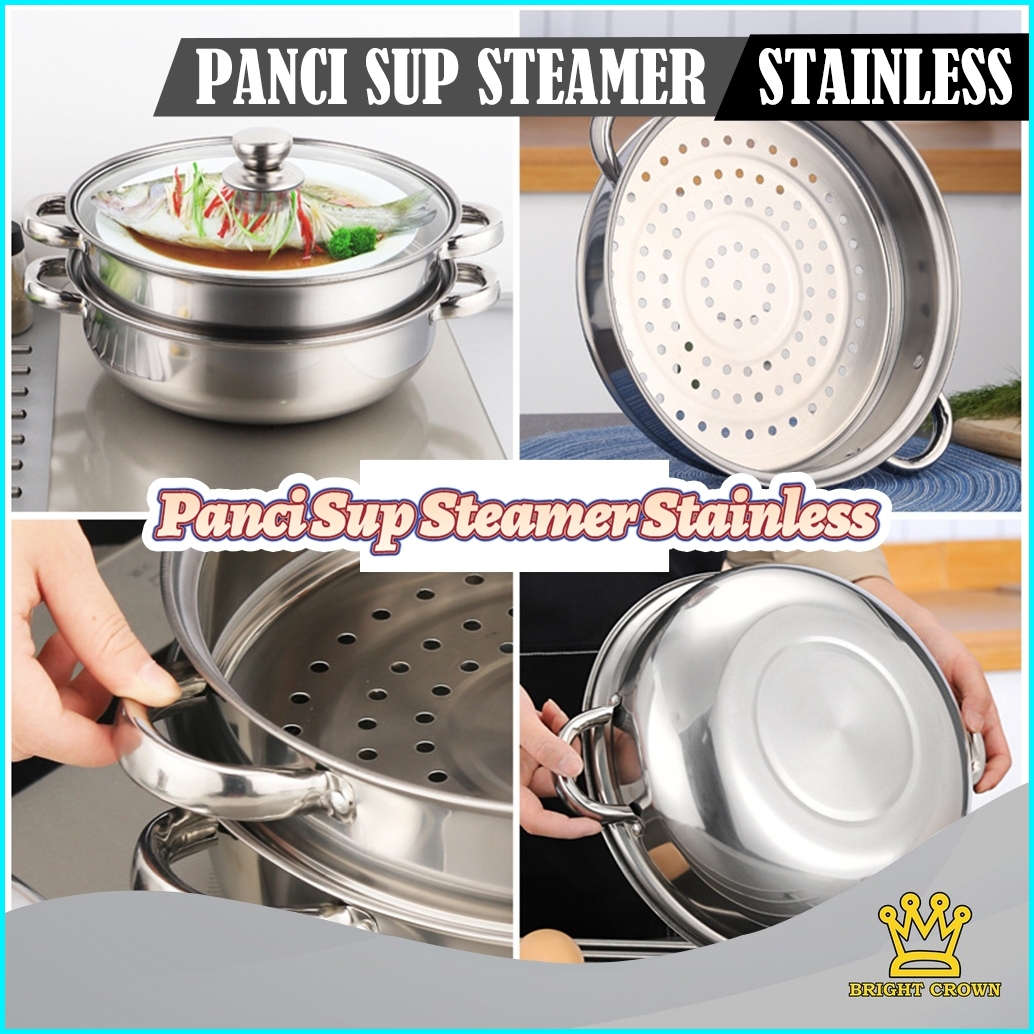 Yatt By Bright Crown Panci Sup Steamer 3in1 Uk 28 Cm Stainless Steel Tutup Kaca Tier Steamer Pan