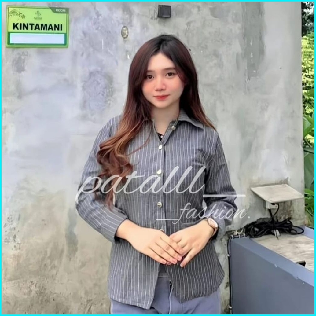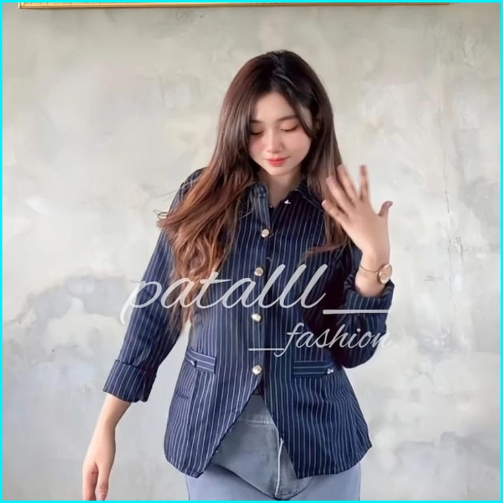 Top Blazer Motif Stripe Lunar Wanita Formal Office