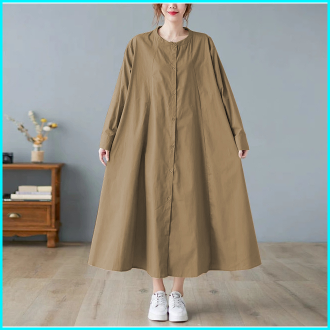 Olin Midi Dress Wanita Korean Style Bahan Katun Linen Rami Hijab Style Muslimah Remaja Dewasa Terbaru Viral 2023