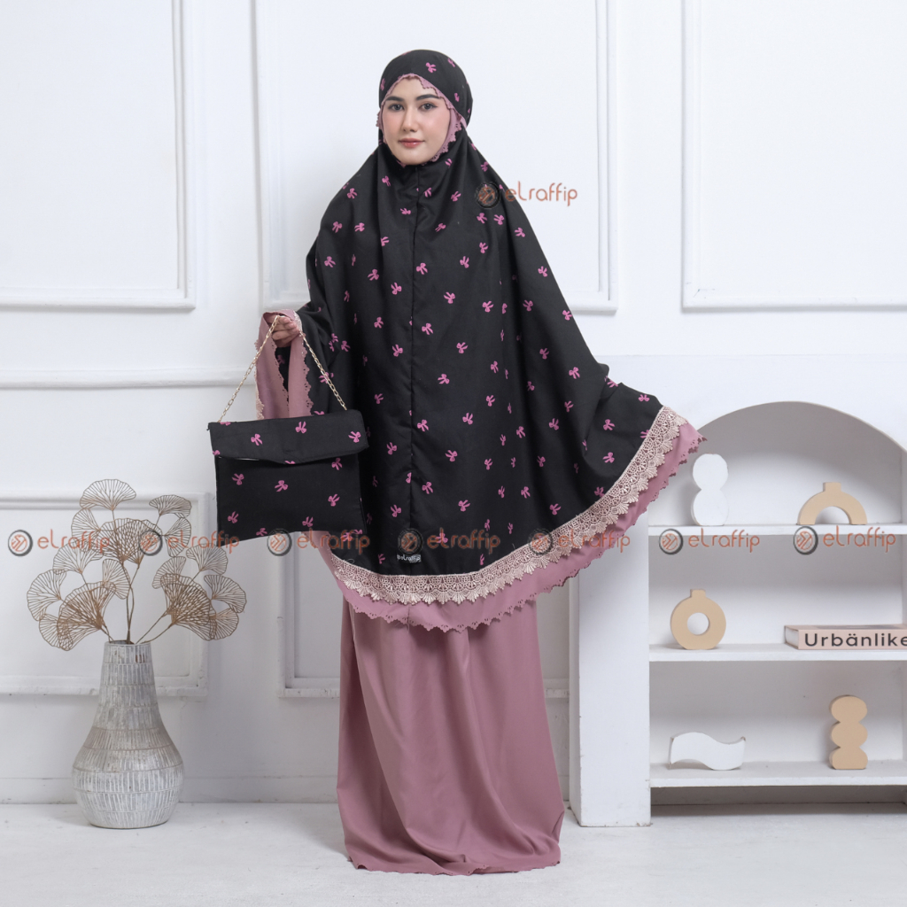 ELRAFFIPMukena Dewasa 2in1 Katun Renda Motif Printing Lasercut KanayaSeries