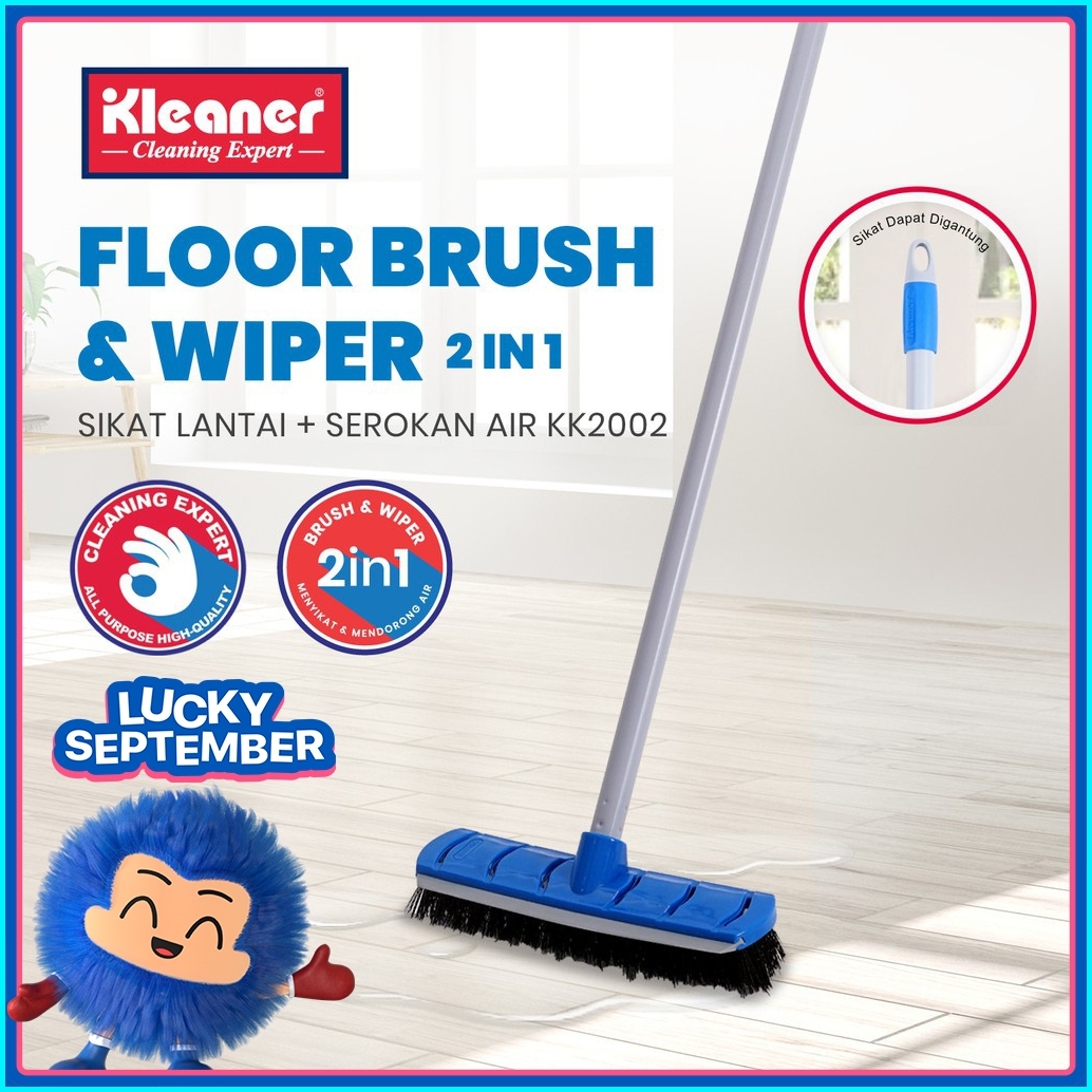Kleaner Sikat Lantai Dengan Serokan Air 2 In 1 Gagang Panjang Floor Brush Pembersih Lantai Kk2002