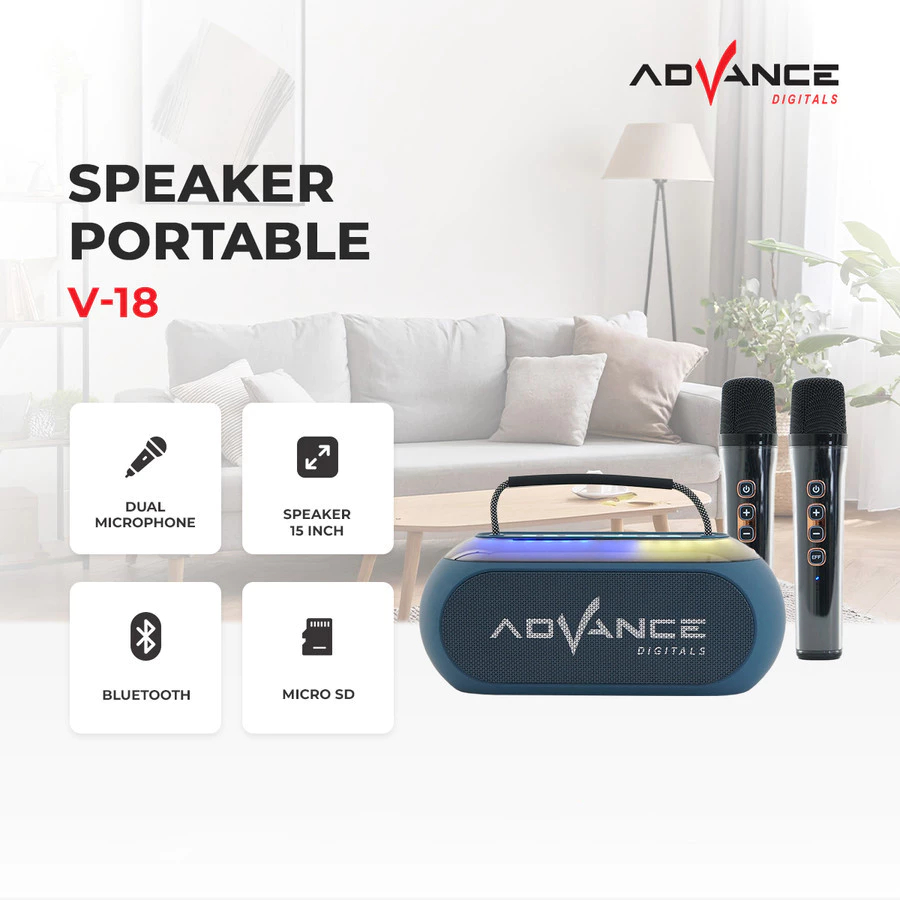 Advance V18 Portable Speaker Bluetooth Dual Microphone Karaoke | Speaker Advance V-18 Free 2 Mic Full Bass Dilengkapi La