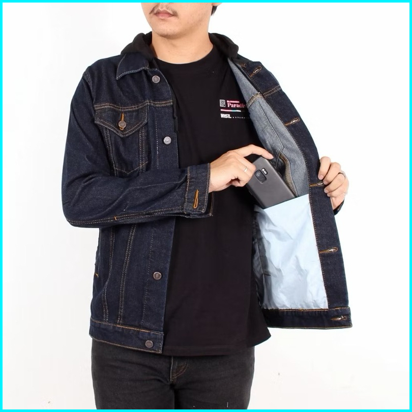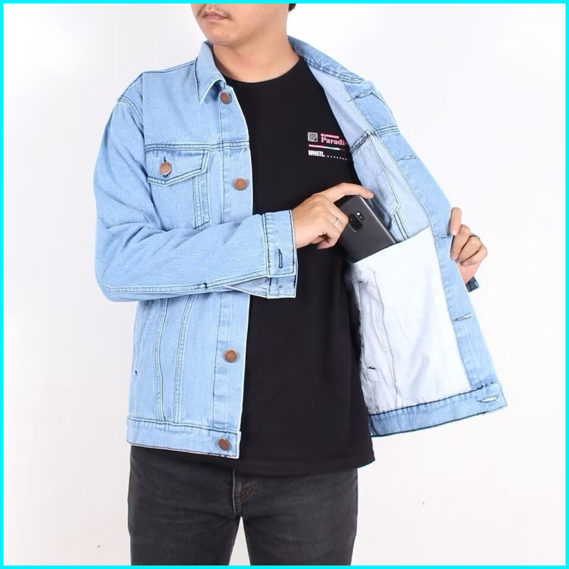 Jaket Jeans Oversize Bio Blitz Bio Wash Blue Black Hitam Bio Blue Bio Pudar