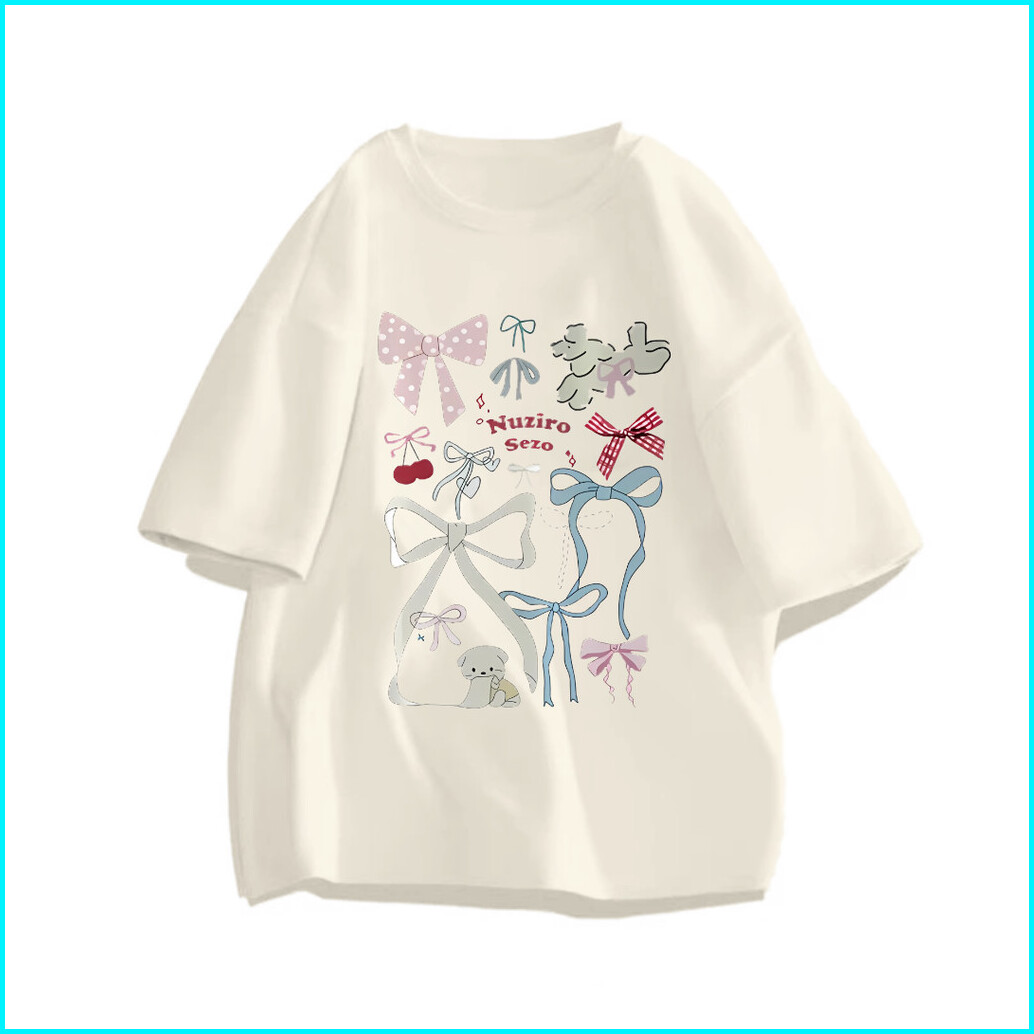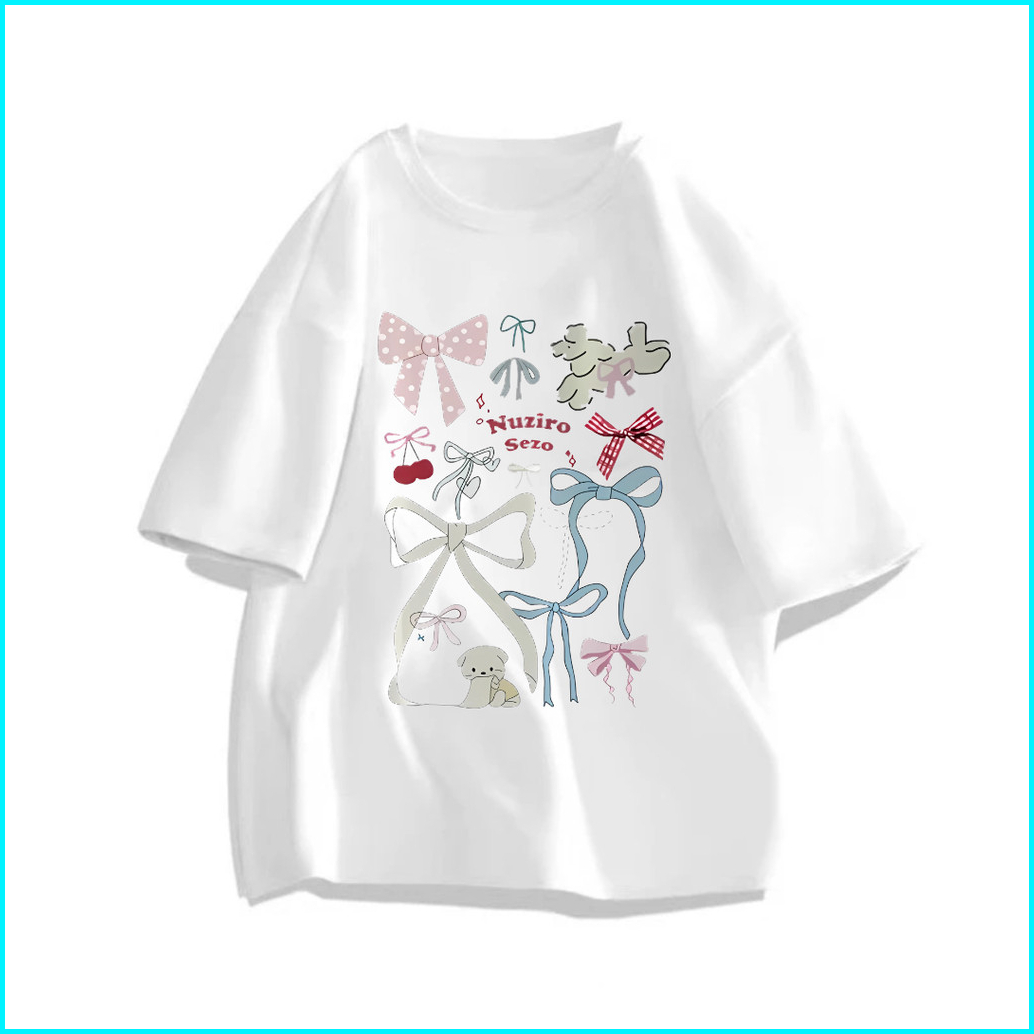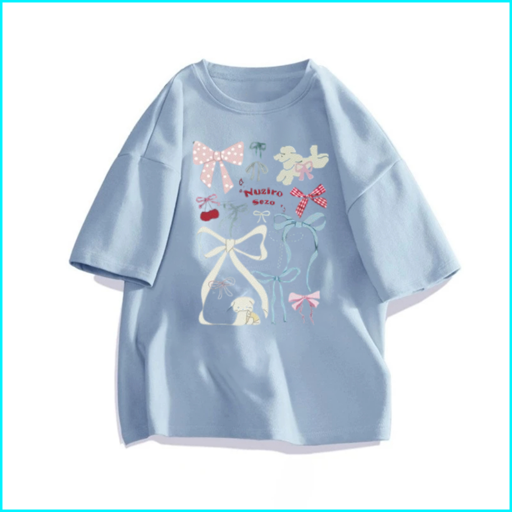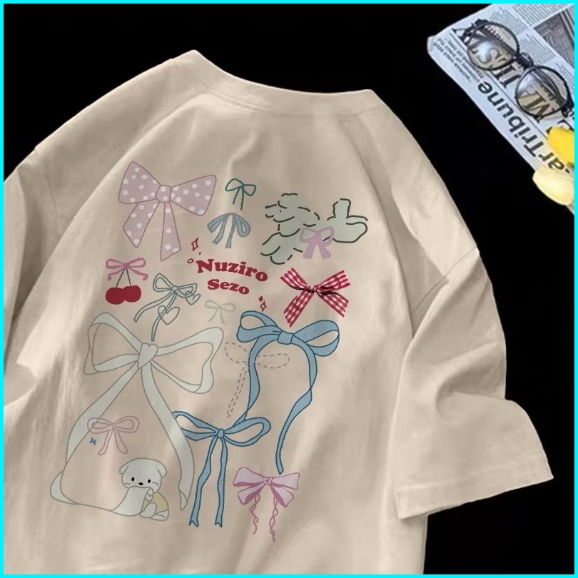 Kaos Oversize Japanese Bow Graffiti Series Korean Style Atasan Wanita Terbaru Bahan 100 Cotton