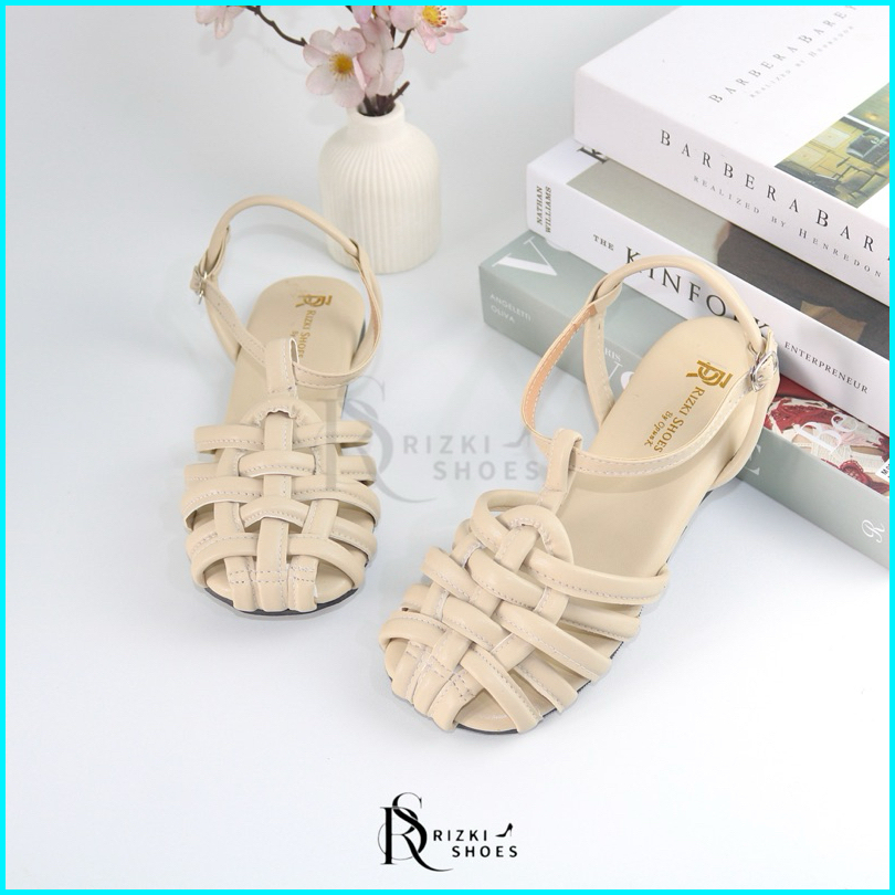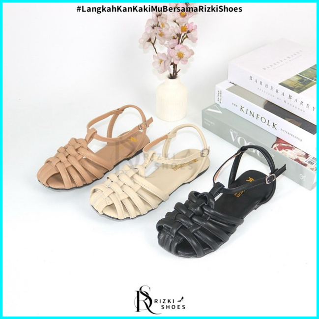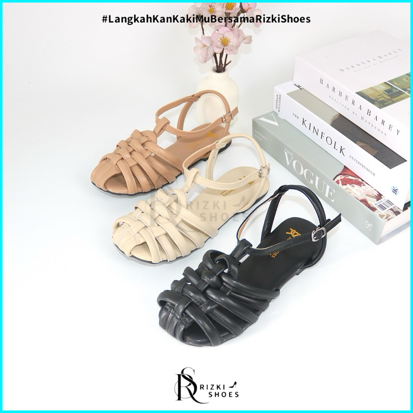Sandal Flat 1 Cm Wanita Kronjo Tali Belakang Gesper Sandal Flat Wanita Kekinian Tp03
