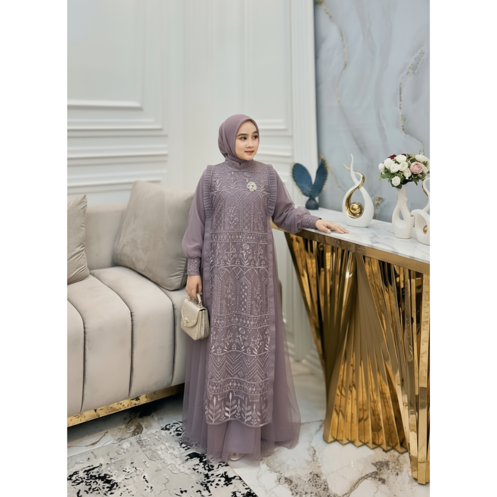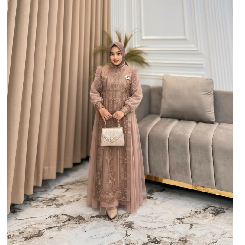 Gamis Pesta Anak Perempuan Mewah Burgandy Nikita Dress Kids Usia 7 Sampai 13 Tahun Baju Brukat Anak