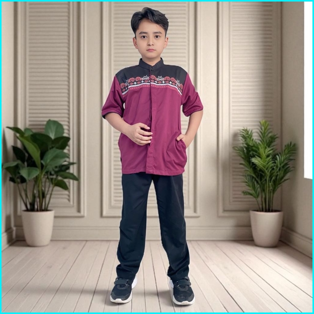 Baju Koko Bordir Anak Laki - Laki Lengan Pendek Umur 8-15 Tahun Motif Boordir New Series -by K I