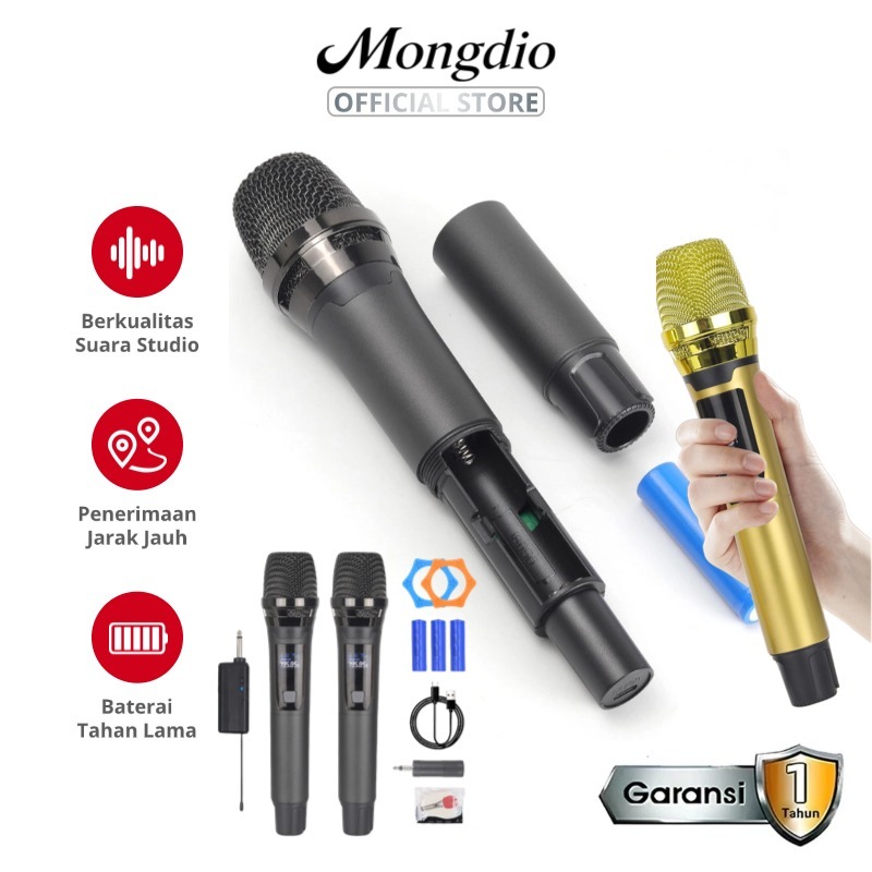 Mongdio Microphone Wireless Bluetooth Dual Handheld - Mikrofon Nirkabel UHF dan Bluetooth 5.3 untuk Karaoke, Gaming & Li