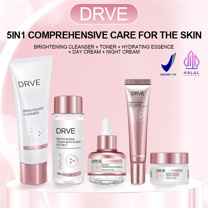 DRVE Brightening Cleanser + Moisturizing Toner With Plant Extract + Beauty Hydrating Essence + Brightening Day Cream + M