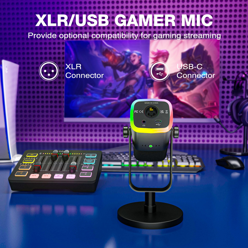 Fifine KS5 Bundling Streaming USB & XLR Dynamic Microphone + Audio Mixer RGB Mic for Streaming Gaming Podcast Profesiona