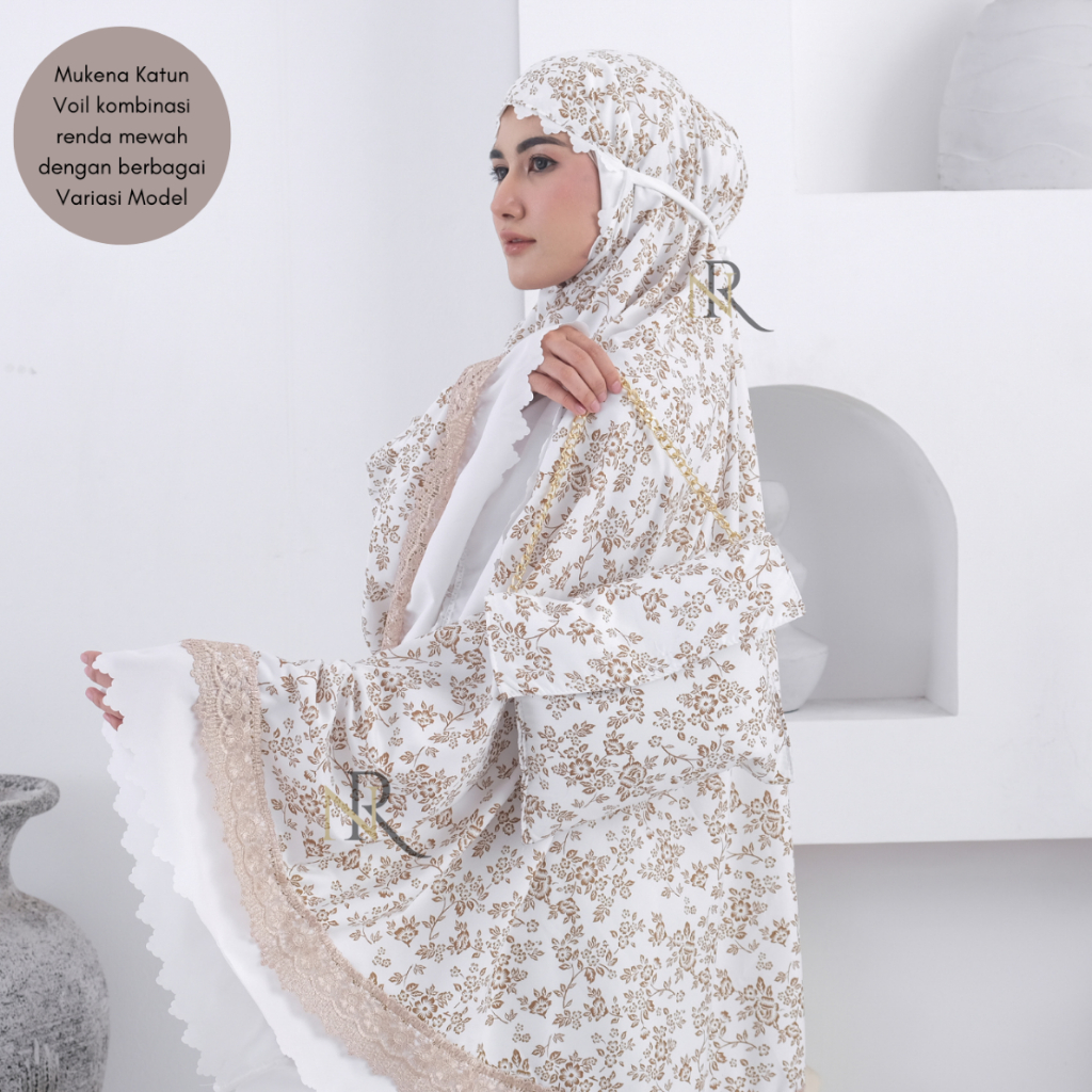 ELRAFFIPMukena Dewasa 2in1 Katun Voil Motif Printing Kombinasi Renda
