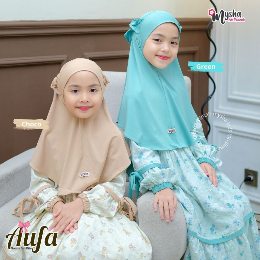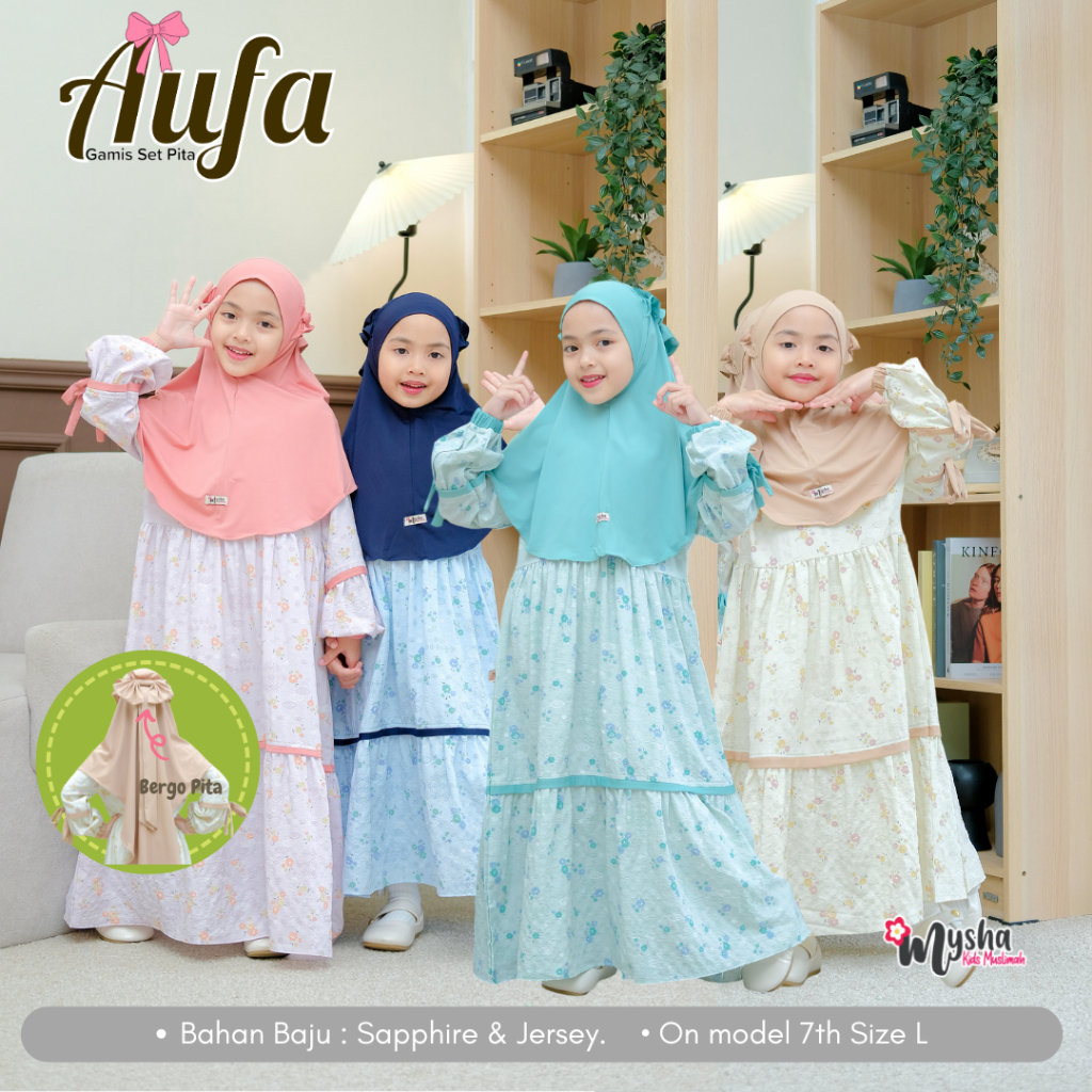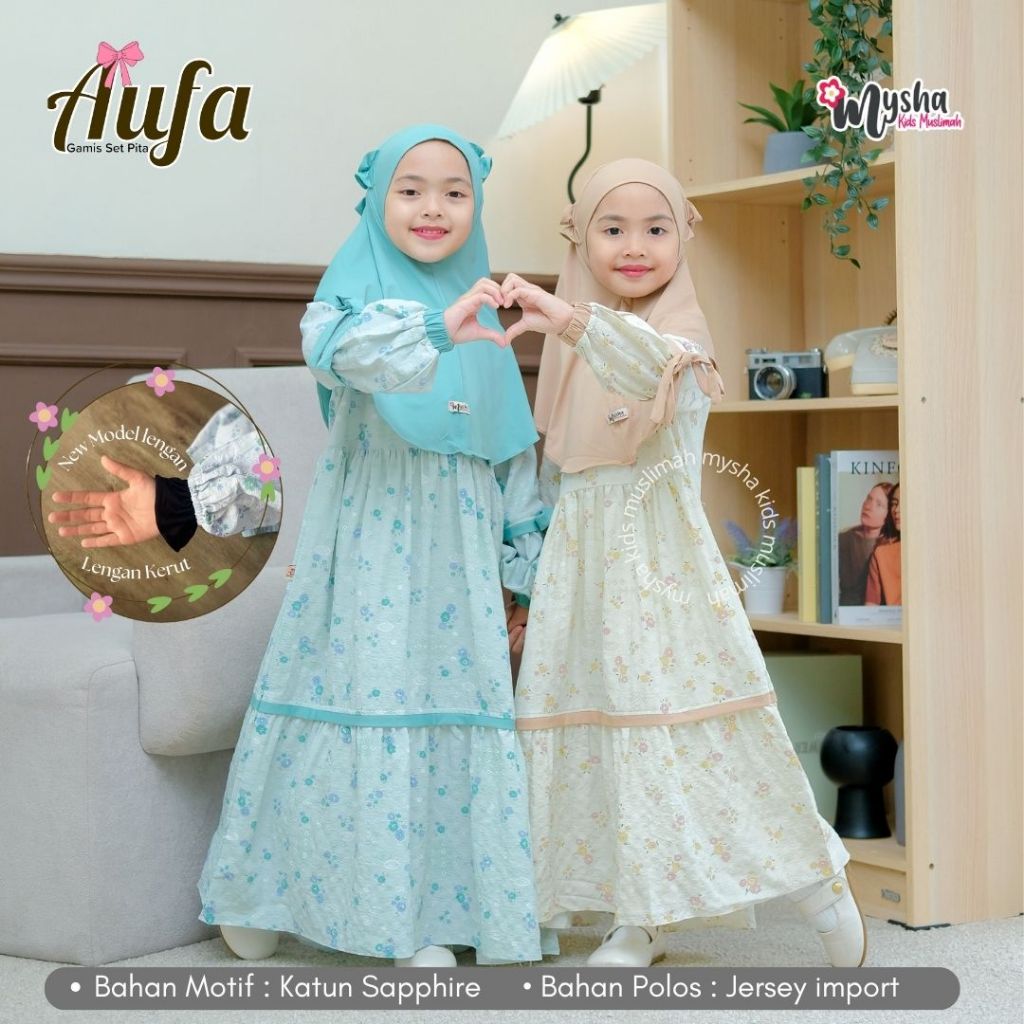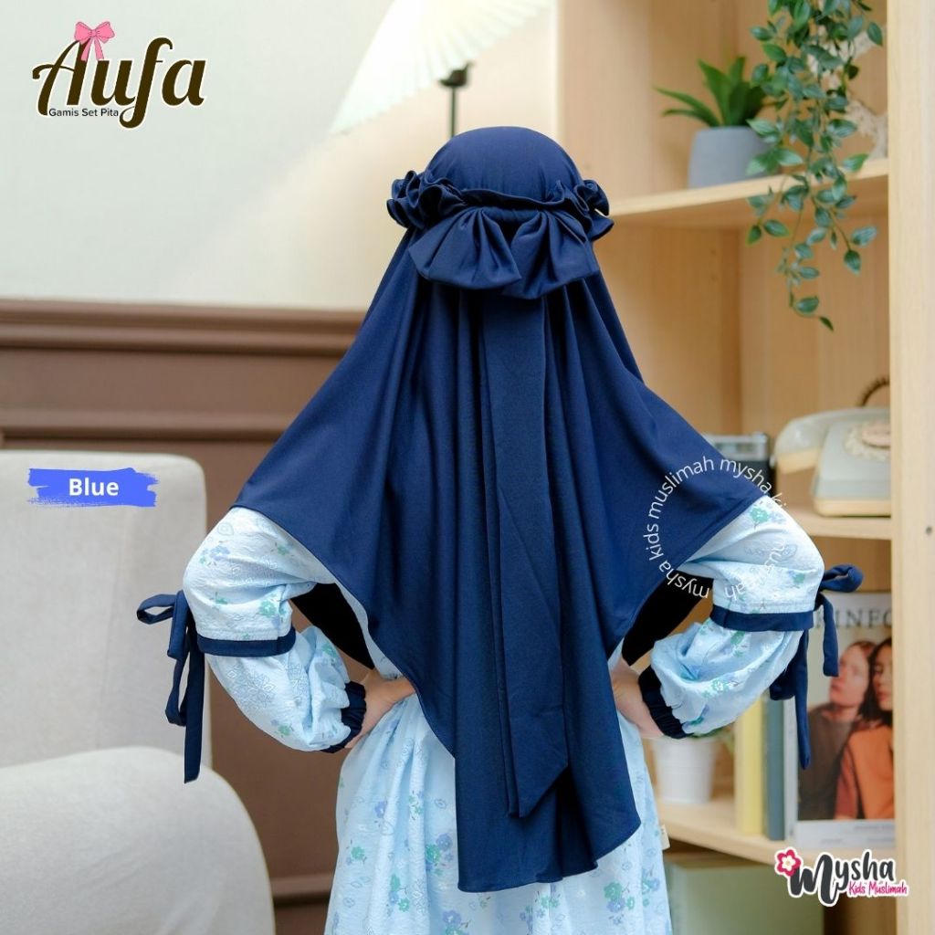 Mysha Kids Muah - Gamis Anak Perempuan ( 1SET HIJAB) AUFA series Baju Mu Katun Sapphire