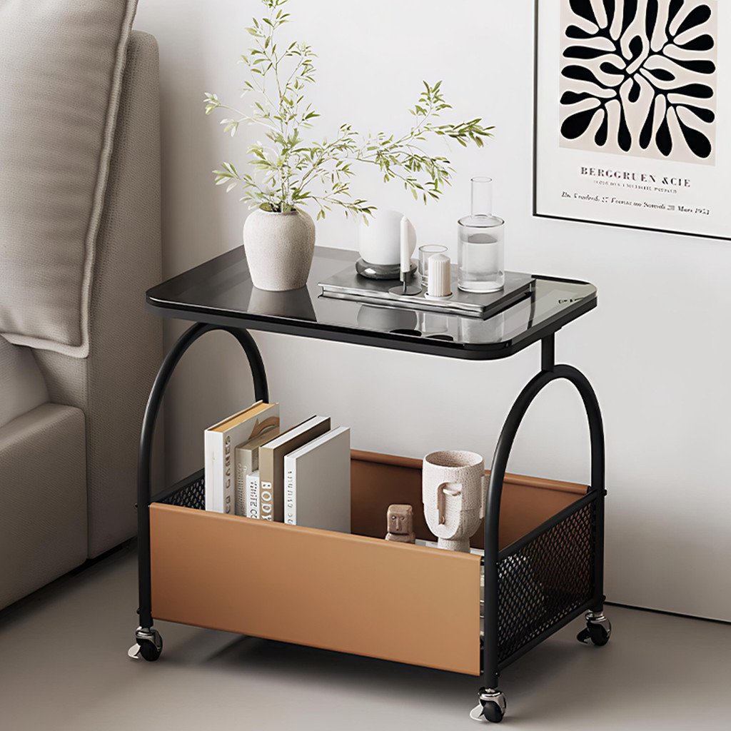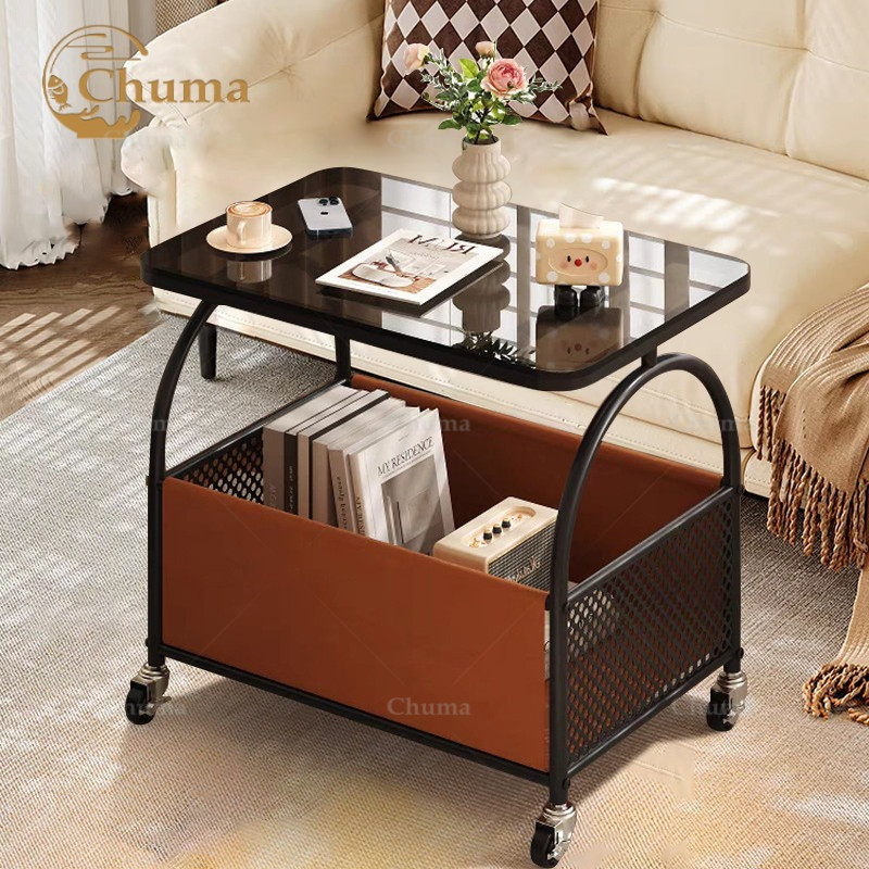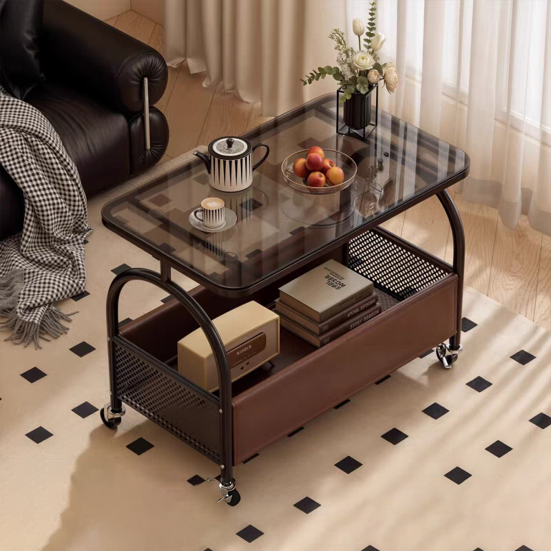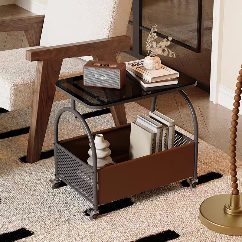 Meja Kopi Seluler Besi+Kaca Meja Tamu Rak Penyimpanan Dua Lapis Santai Meja Kopi Meja Meja Kecil Kamar Meja Samping Sofa