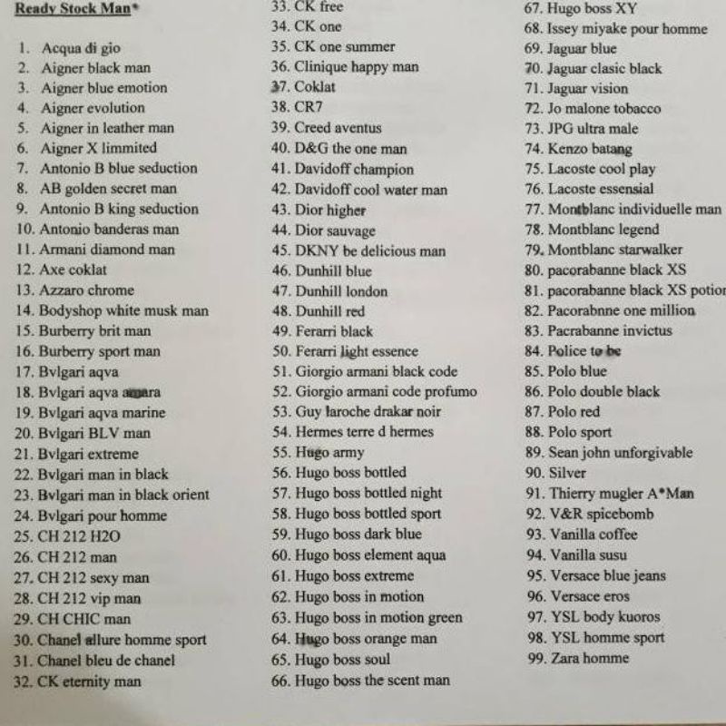 INSPIRED PARFUME REFILL PARFUME BANDUNG FRAGRANCE TAHAN LAMA 35 ML 60 ML 100 ML