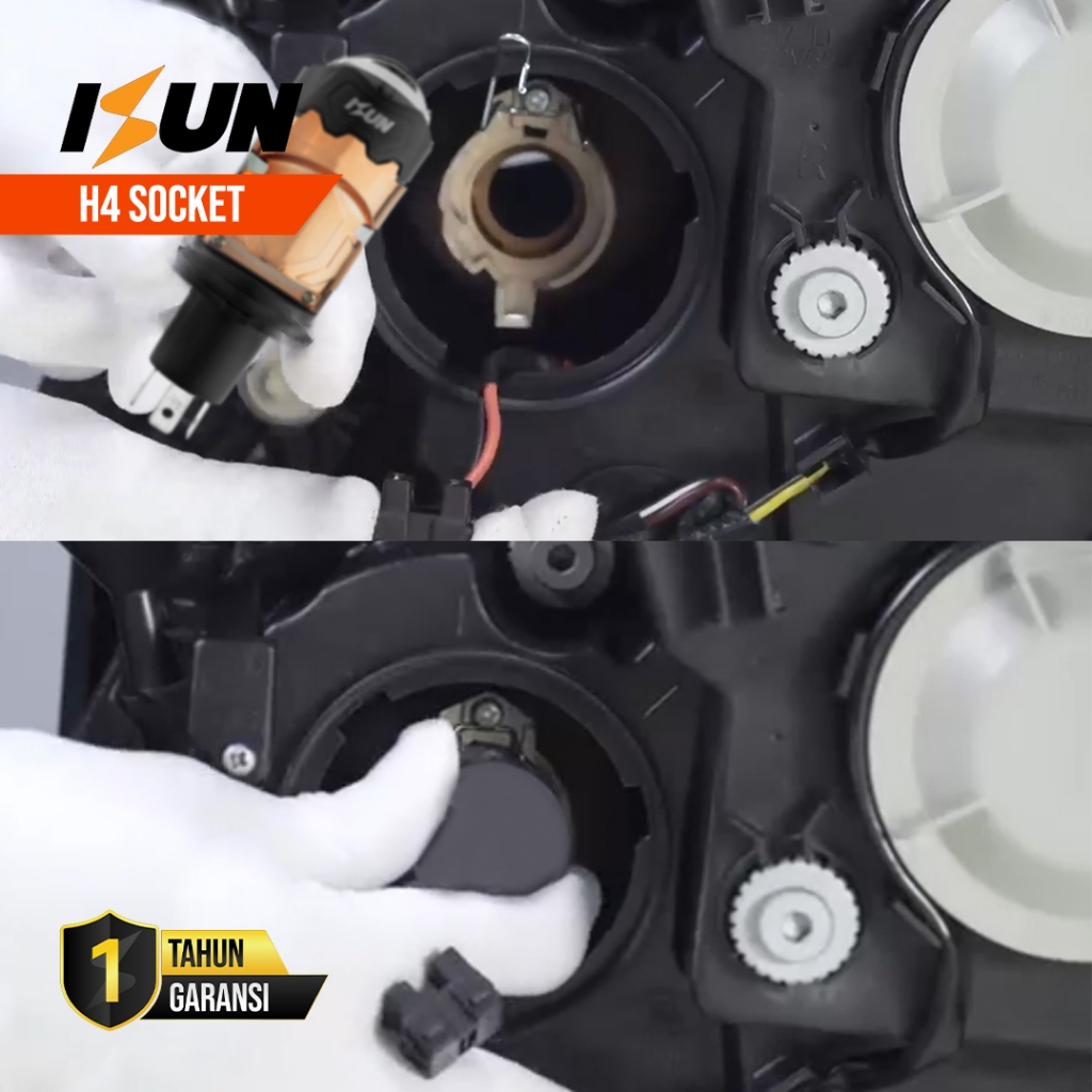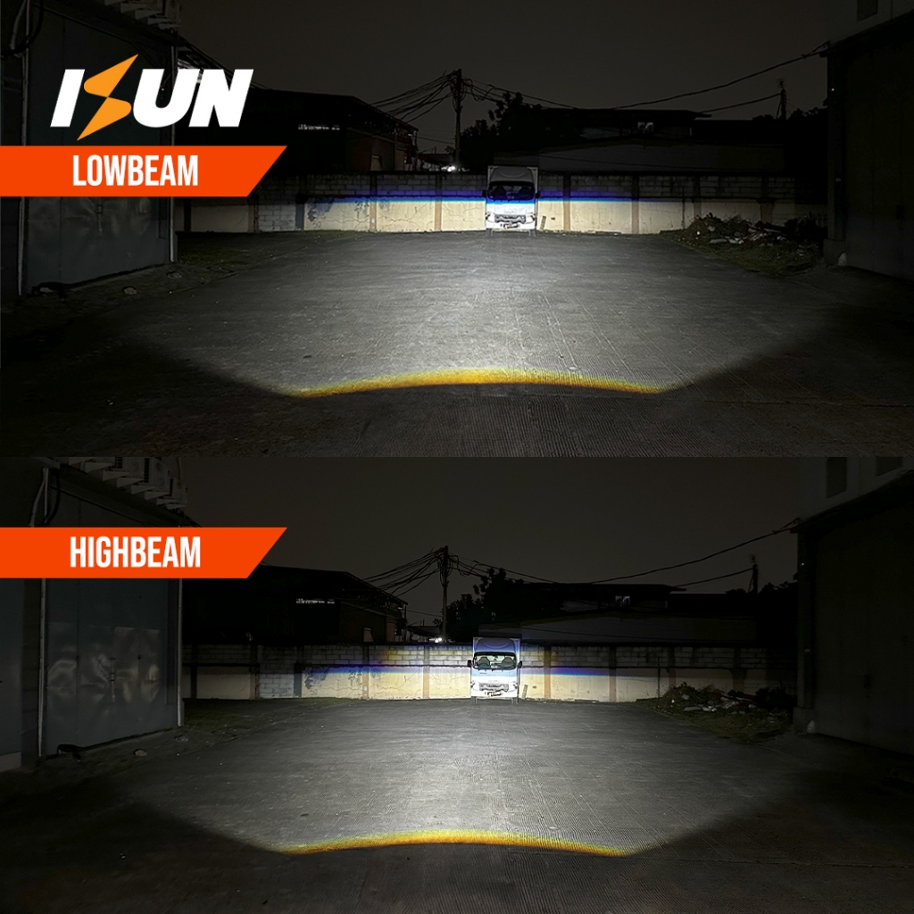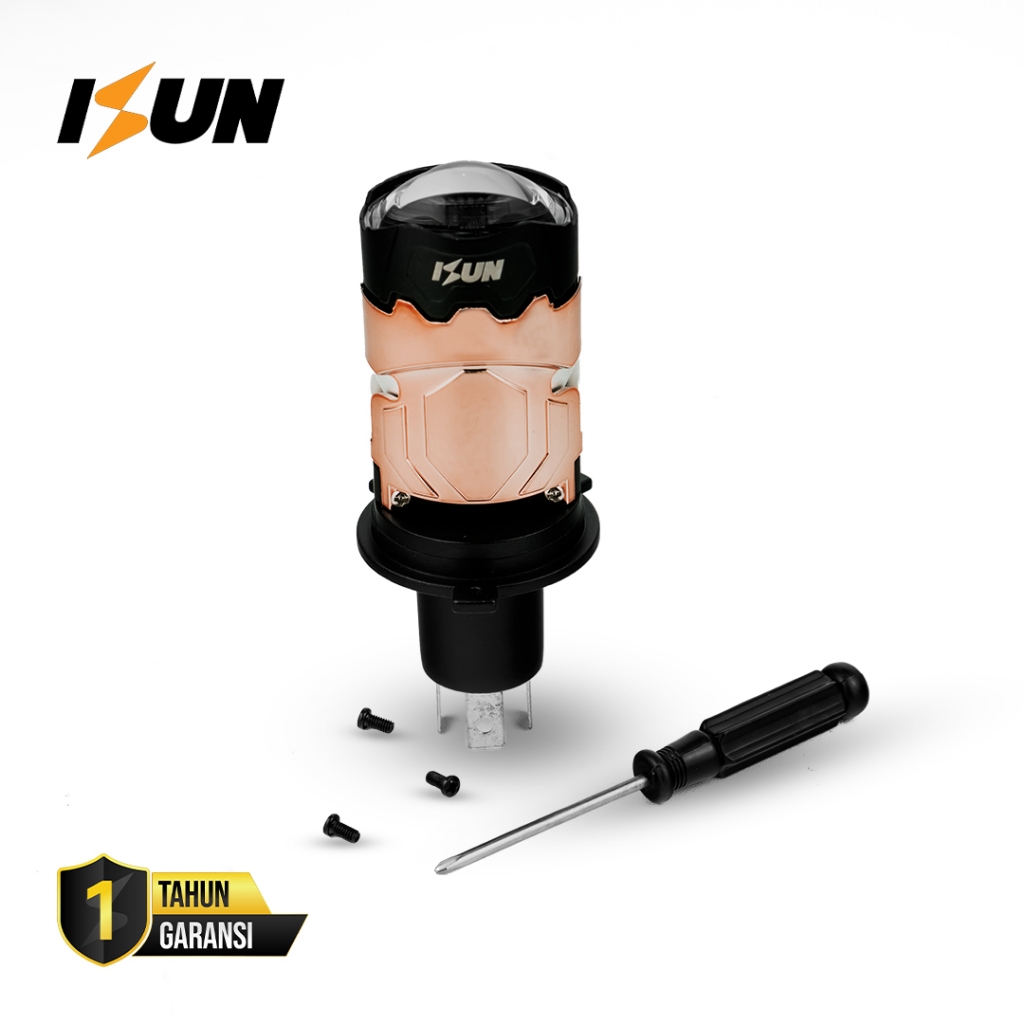ISUN Lampu H4 Mini BILED MB55 Flat Cut Off dengan Double-Lens Laser dan Kipas Pendingin DC9-60V/50W