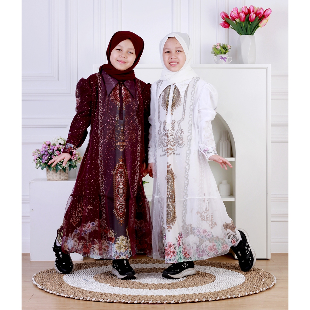 Dungdungkids Gamis Anak Sultan Aresha Ceruty Babydoll Mix Tile Glitter Free Jilbab 3 - 14 Tahun