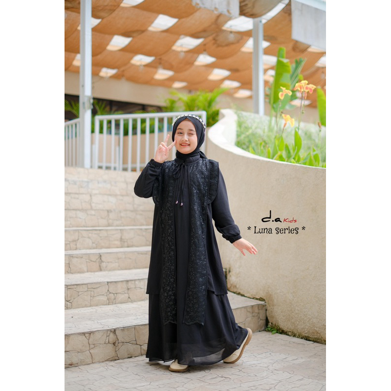 luna series-gamis anak perempuan casual mewah nyaman di pake bahan premium free pasmina sampai usia 12 tahun