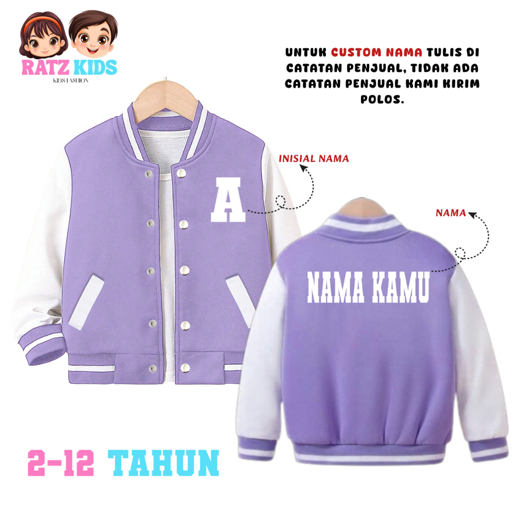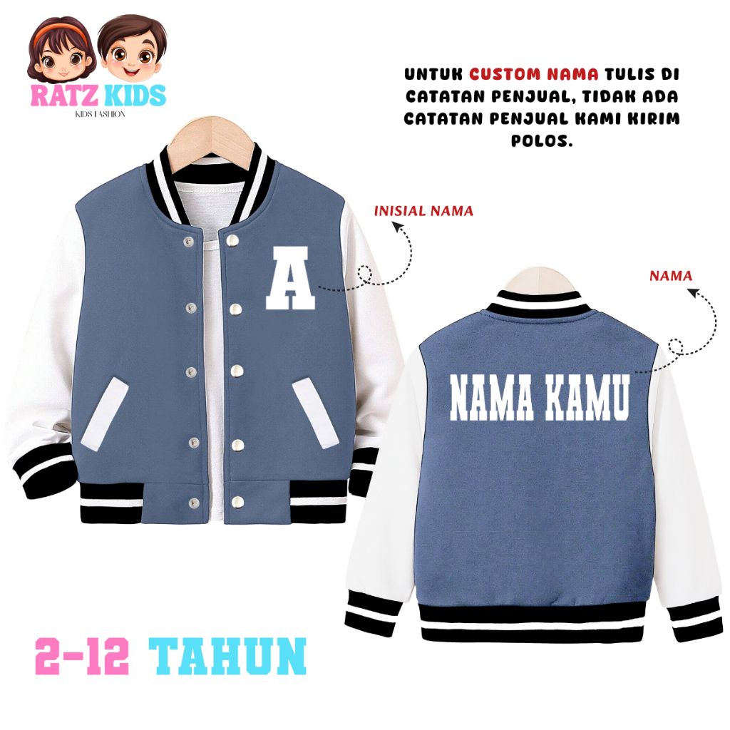 Ratz Kids - Jaket Baseball Varsity Anak Custom Nama Untuk Usia 2-12 Tahun