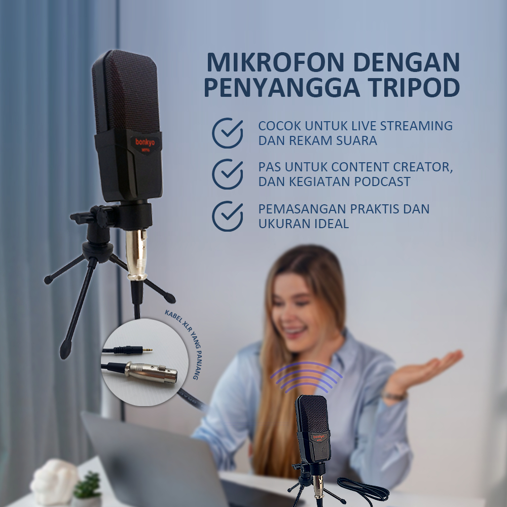 Bonkyo M996 Microphone Karaoke Condenser Peralatan Audio Portable Original Untu Podcast Pc Gaming Live